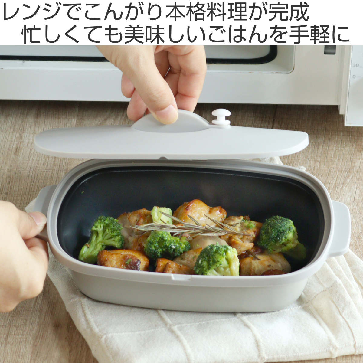 特殊な底面プレートがマイクロ波を効率よく熱に変換。高い熱伝導性を持つアルミが熱を均一に伝え、レンジ内で高温発熱します。この仕組みにより、レンジでありながらまるでフライパンのような本格調理が叶います。