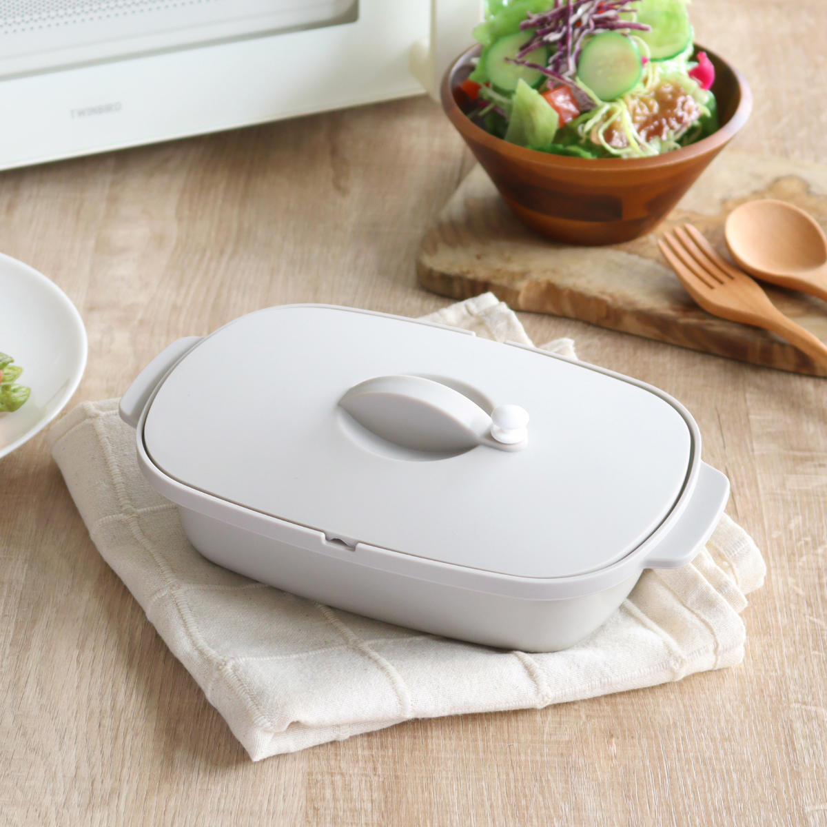 深さがあるので汁気の多い料理も安心。コンパクトな角型なので収納場所を取りません。