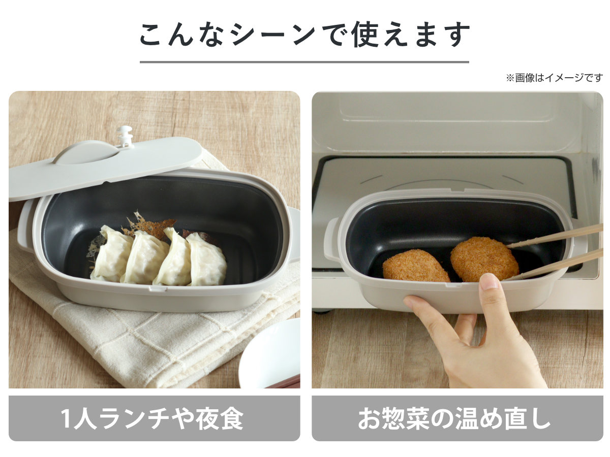 フライパンを出すのが面倒なときでも、冷凍餃子をレンジでサッとこんがり調理。火を使わず安全なので、子どもや高齢者でも安心。また、お惣菜の温め直しもできるので、疲れた日や忙しい日頼れるアイテムです。