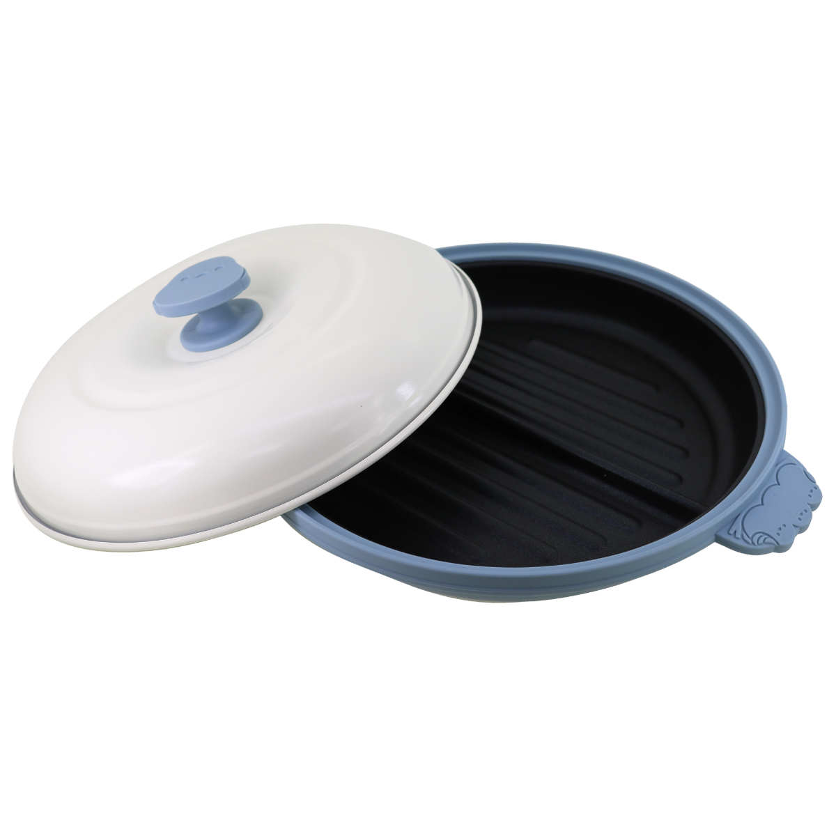レンジパン 丸型 シマエナガ 仕切り付き 電子レンジ調理器 CHEF ( グリルパン 電子レンジ 簡単 焼き魚 魚焼き器 時短調理 電子レンジ専用調理器 アルミ製 フッ素加工 温め直し 焼き目 便利グッズ かわいい ) 【くすみグレー】