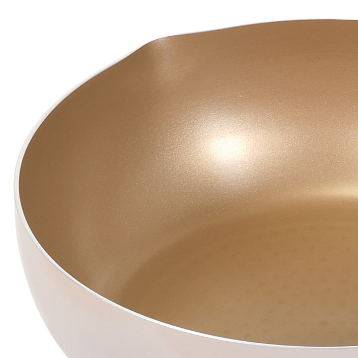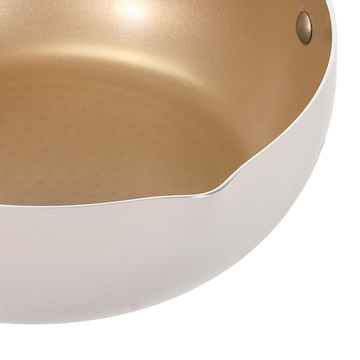 内側には、つるつるシルキーな2層のスピンコートとアルマイト加工が施されていて、汚れがサッと落としやすく焦げ付きを防ぎます。洗いやすく調理後のお手入れも簡単で、初心者の方にも扱いやすいシリーズです。