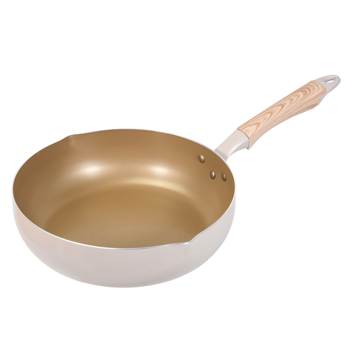 フライパン 28cm 深型 IH対応 ロングライフスピンコート 極深 いため鍋 ( ガス火対応 オール熱源対応 炒め鍋 金属ヘラOK ふっ素加工 フッ素加工 軽い 28センチ フッ素コーティング アルミ製 片手鍋 軽量 木目調ハンドル ホワイト )