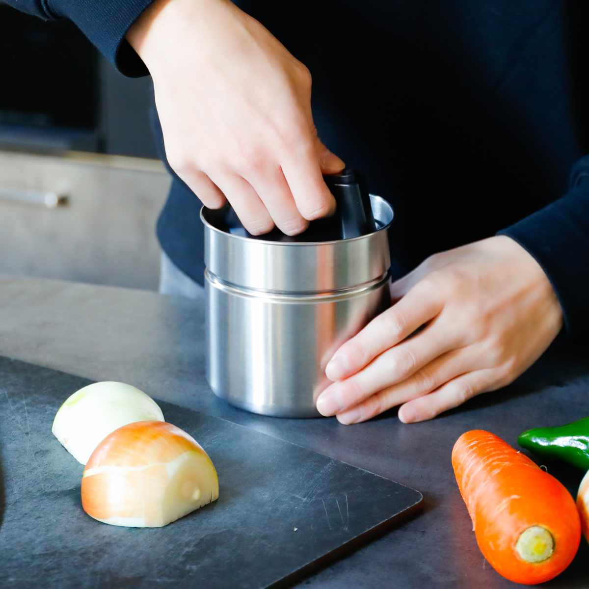ゴミ箱 atomico 密閉できる 生ごみキャニスター Sサイズ ( 生ゴミ 冷凍 臭わない ふた付き ごみ箱 コンパクト 卓上 ニオイ 虫対策 750ml ステンレス製 密閉 生ゴミ臭 丸洗いOK シンプル 小さい )