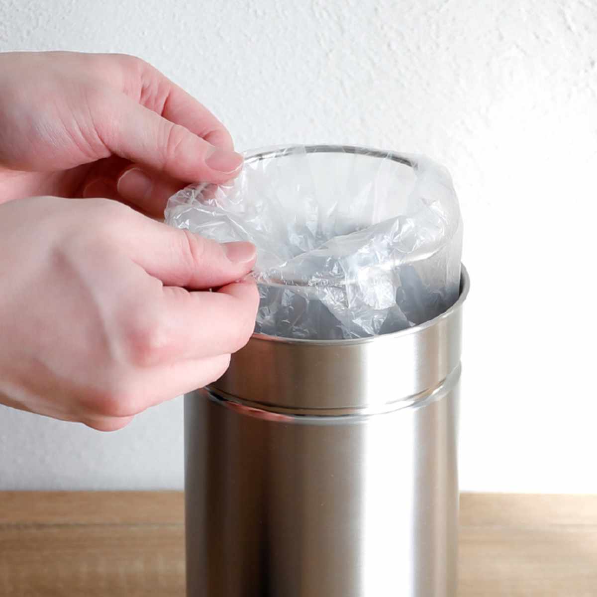 袋止めリング付きで、簡単に袋をセットできます。外側からは袋が見えないので生活感をオフできます。