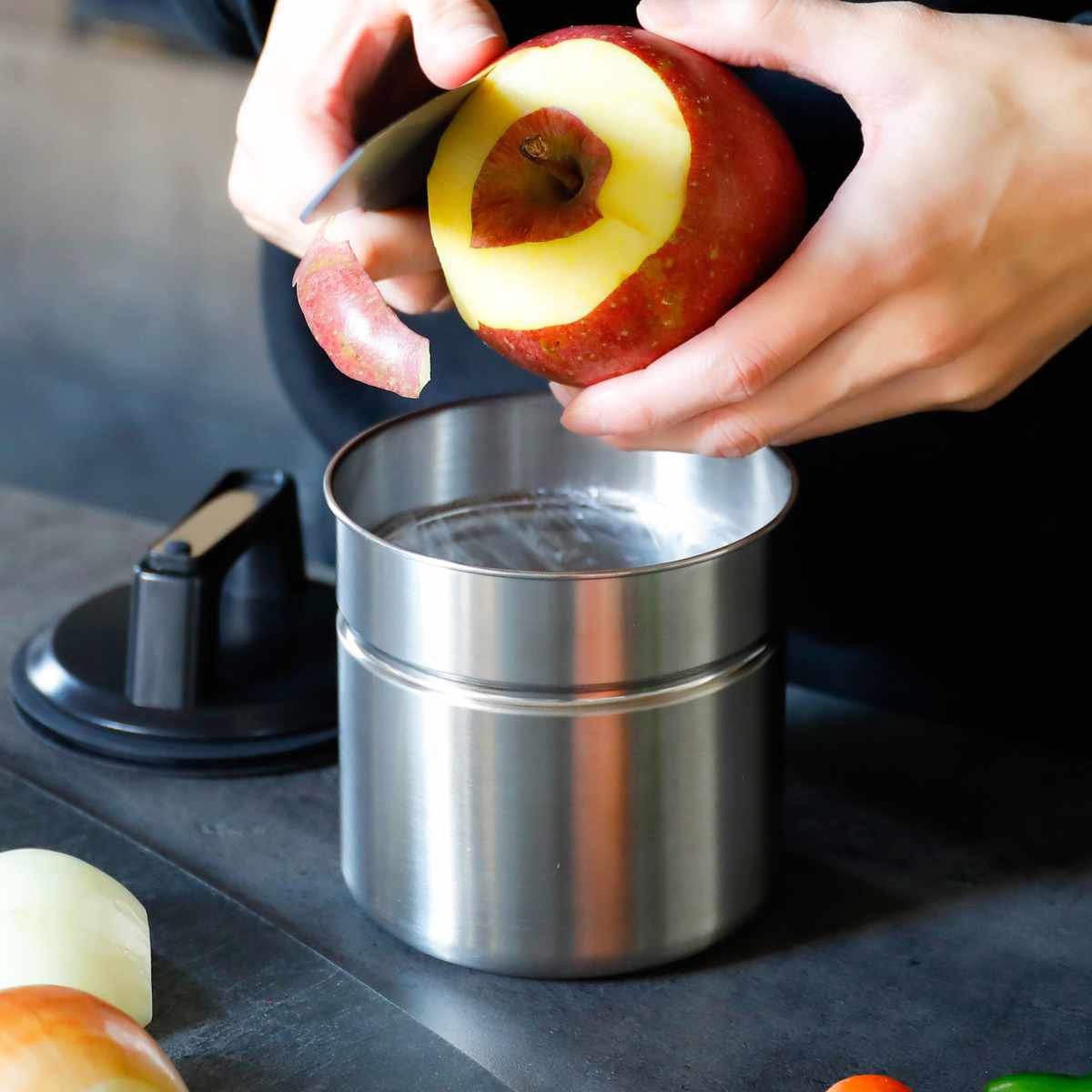 毎日出る生ゴミを数日分まとめて捨てられる生ゴミキャニスターです。密閉パッキンでニオイを抑制し、悪臭に寄ってくるコバエ対策にもなります。