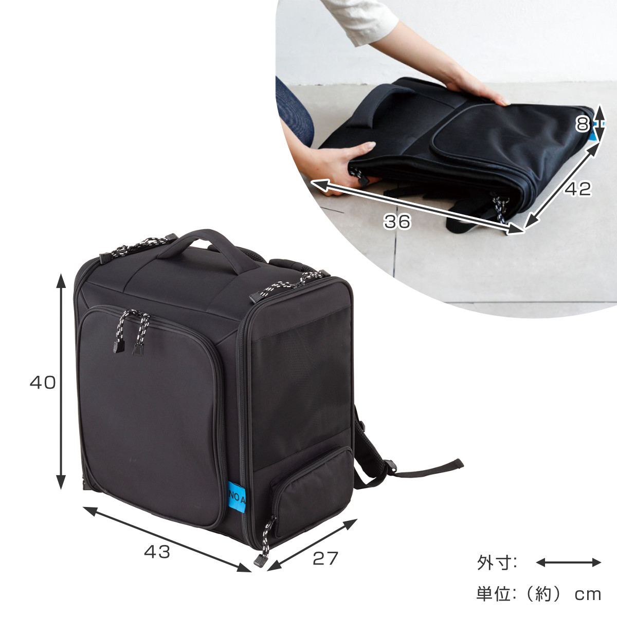 | サイズ | 約 幅43×奥行27×高さ40(cm) 折り畳み時:約 幅36×奥行8×高さ42(cm) ※サイズは持ち手を含まない |