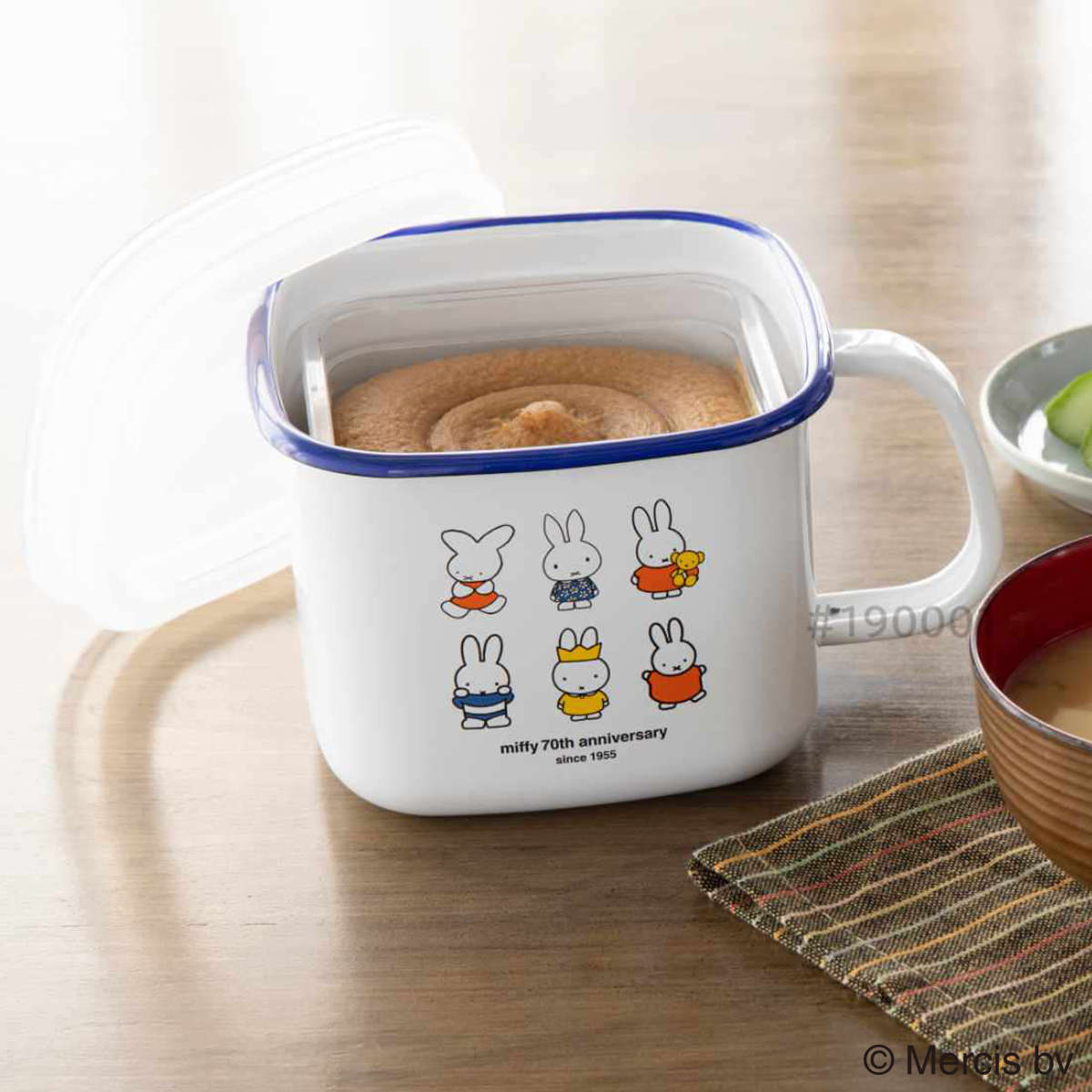 保存容器 ミッフィー70周年 角型 みそポット 1.5L ( miffy 富士ホーロー 密閉 琺瑯 味噌ポット ホーロー オーブン対応 IH対応 ガス対応 味噌入れ ストッカー 食品保存 片手鍋 琺瑯容器 ほうろう 蓋 おしゃれ かわいい 1500ml )
