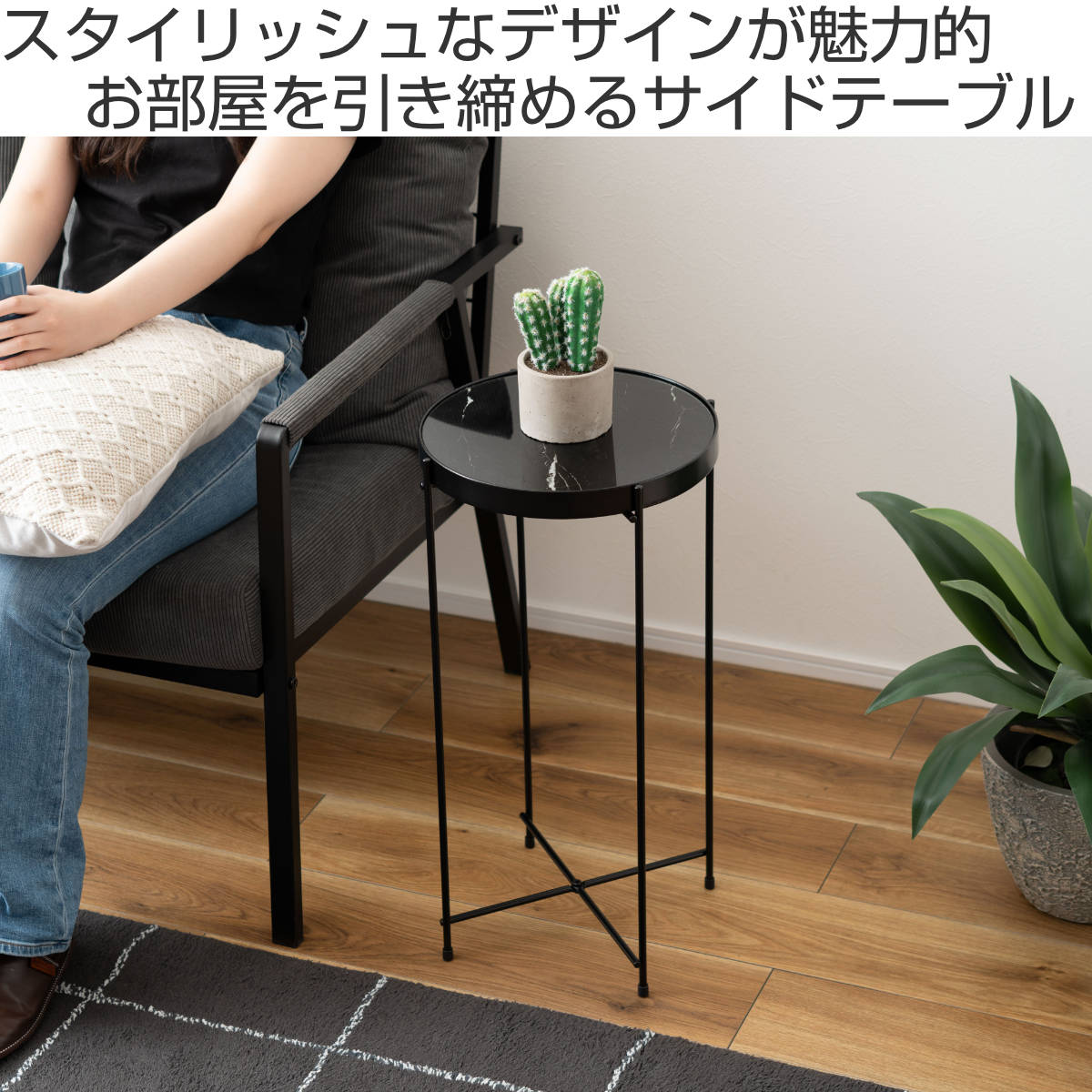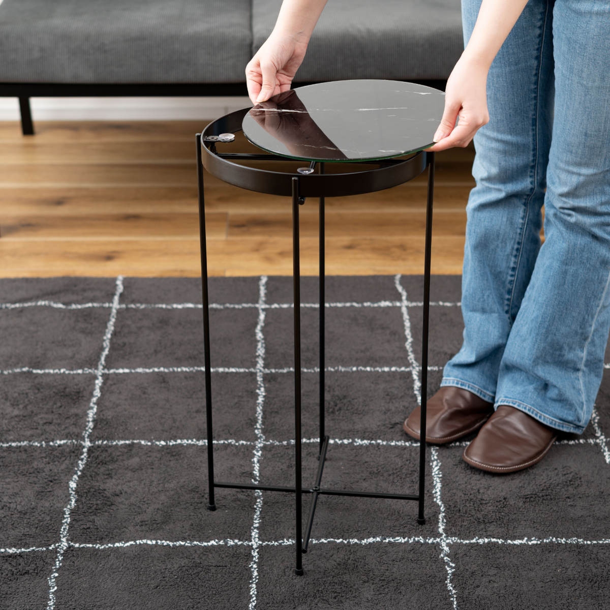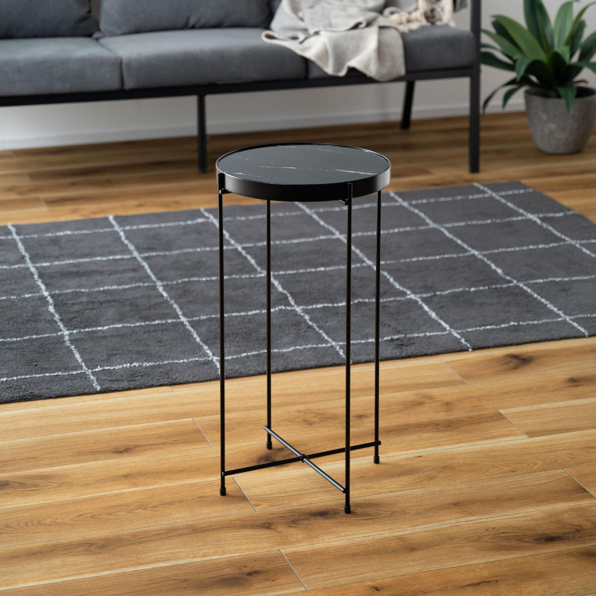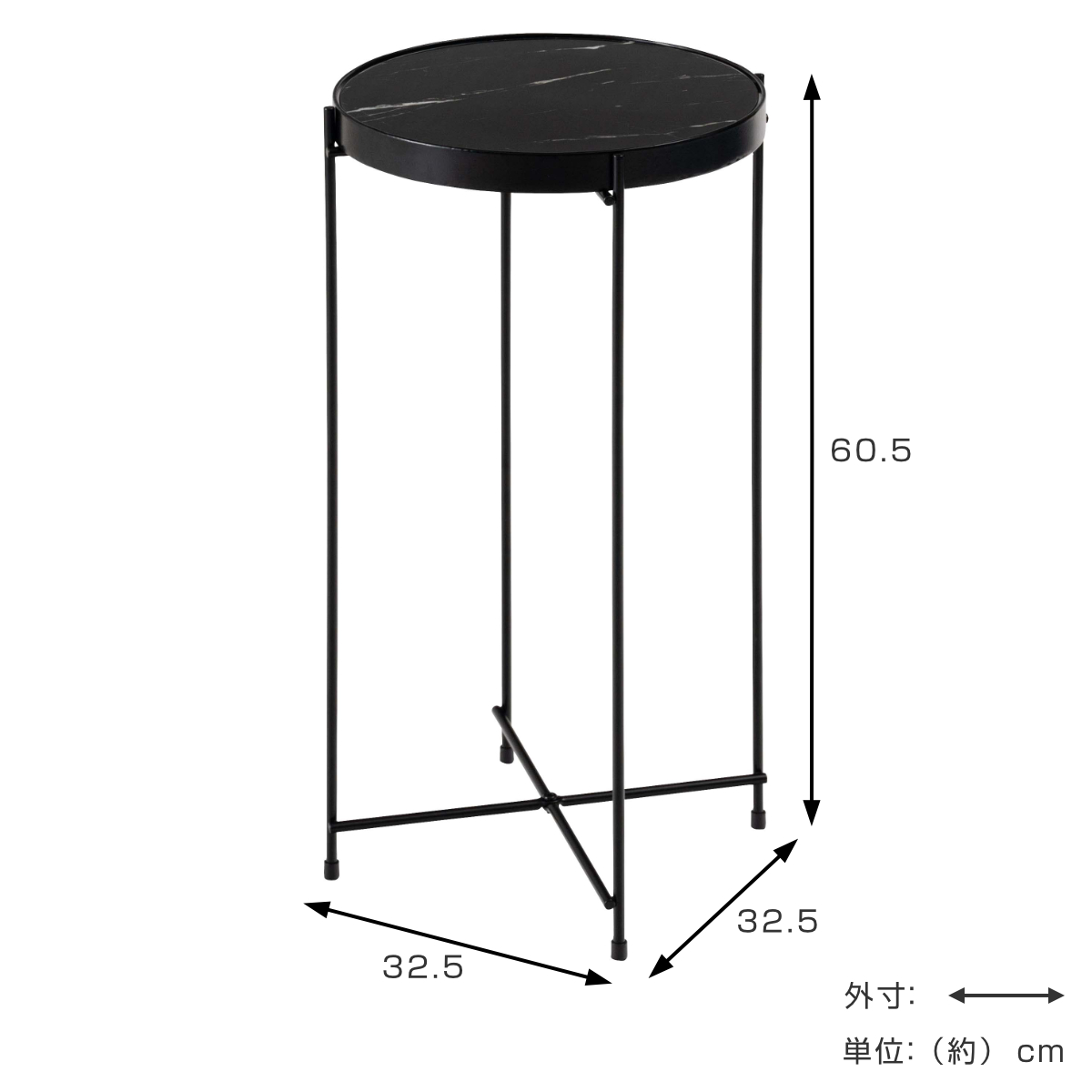 サイドテーブル 円型 高さ60.5cm 石目調 ( 丸 ラウンド ハイタイプ ガラス 天板 ナイトテーブル ミニテーブル ソファ ベッド 横 スチール 軽量 軽い ブラック 黒 高級感 シンプル おしゃれ モダン )