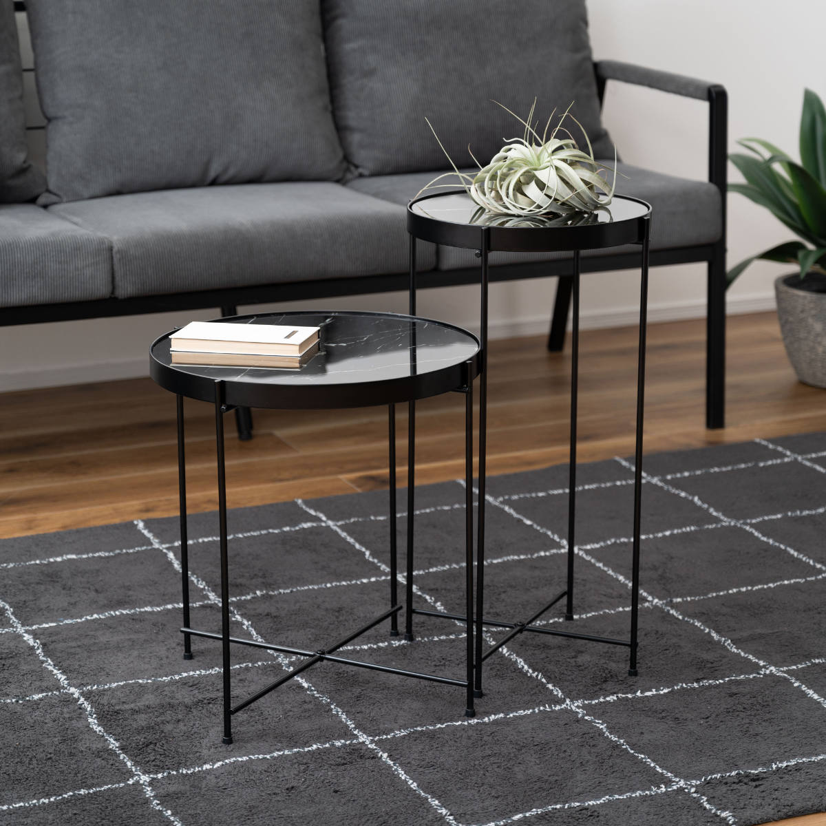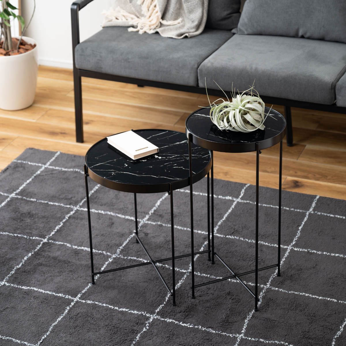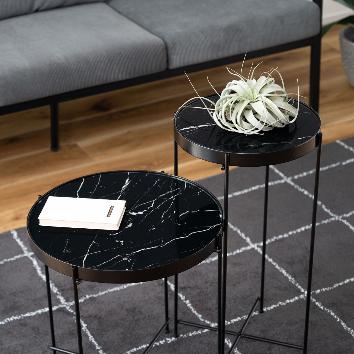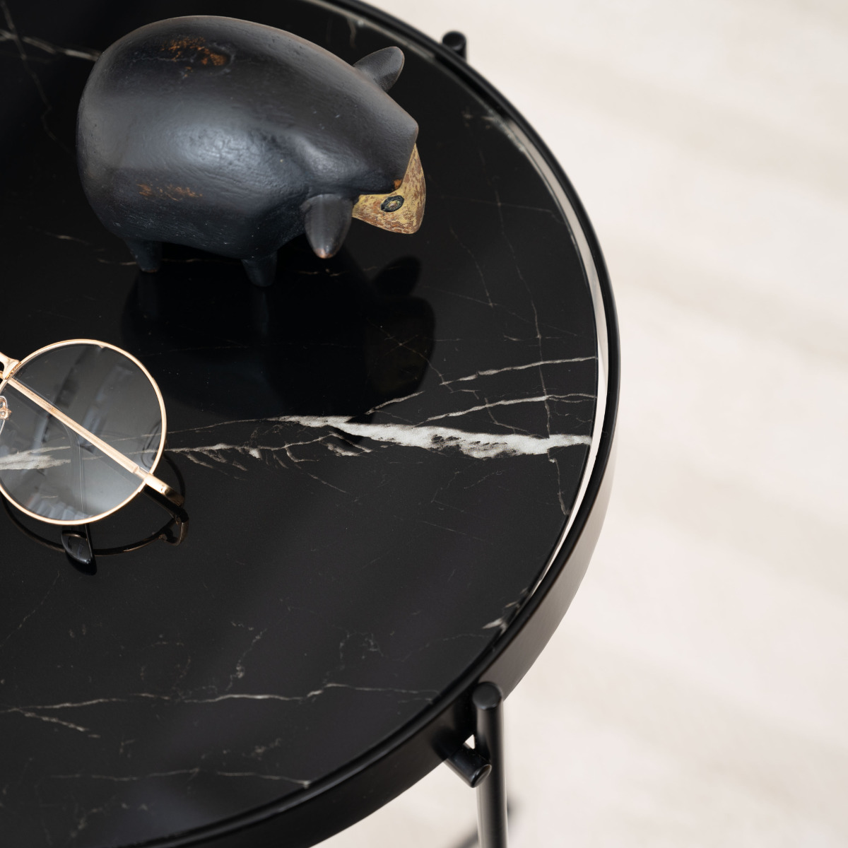サイドテーブル 円型 高さ60.5cm 石目調 ( 丸 ラウンド ハイタイプ ガラス 天板 ナイトテーブル ミニテーブル ソファ ベッド 横 スチール 軽量 軽い ブラック 黒 高級感 シンプル おしゃれ モダン )
