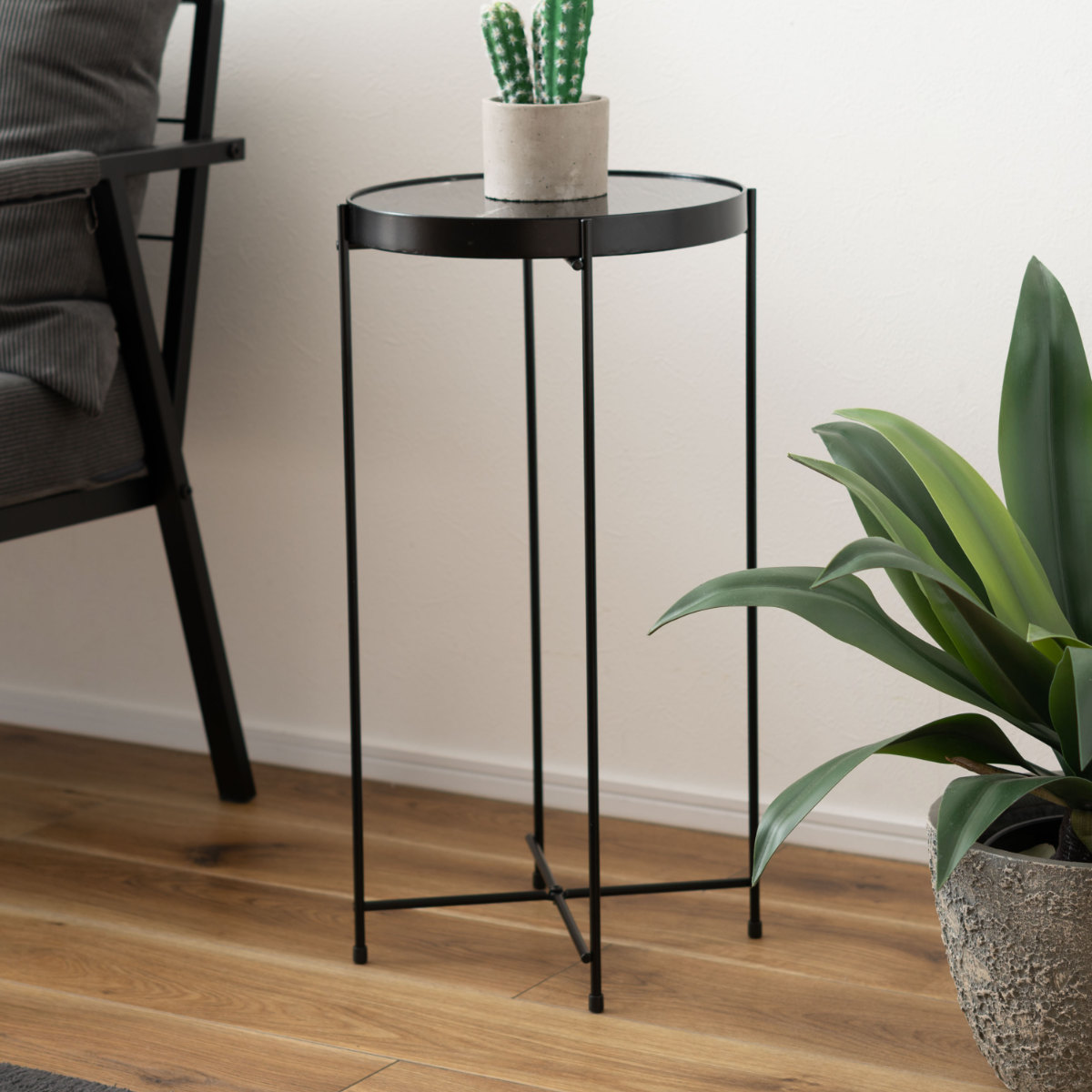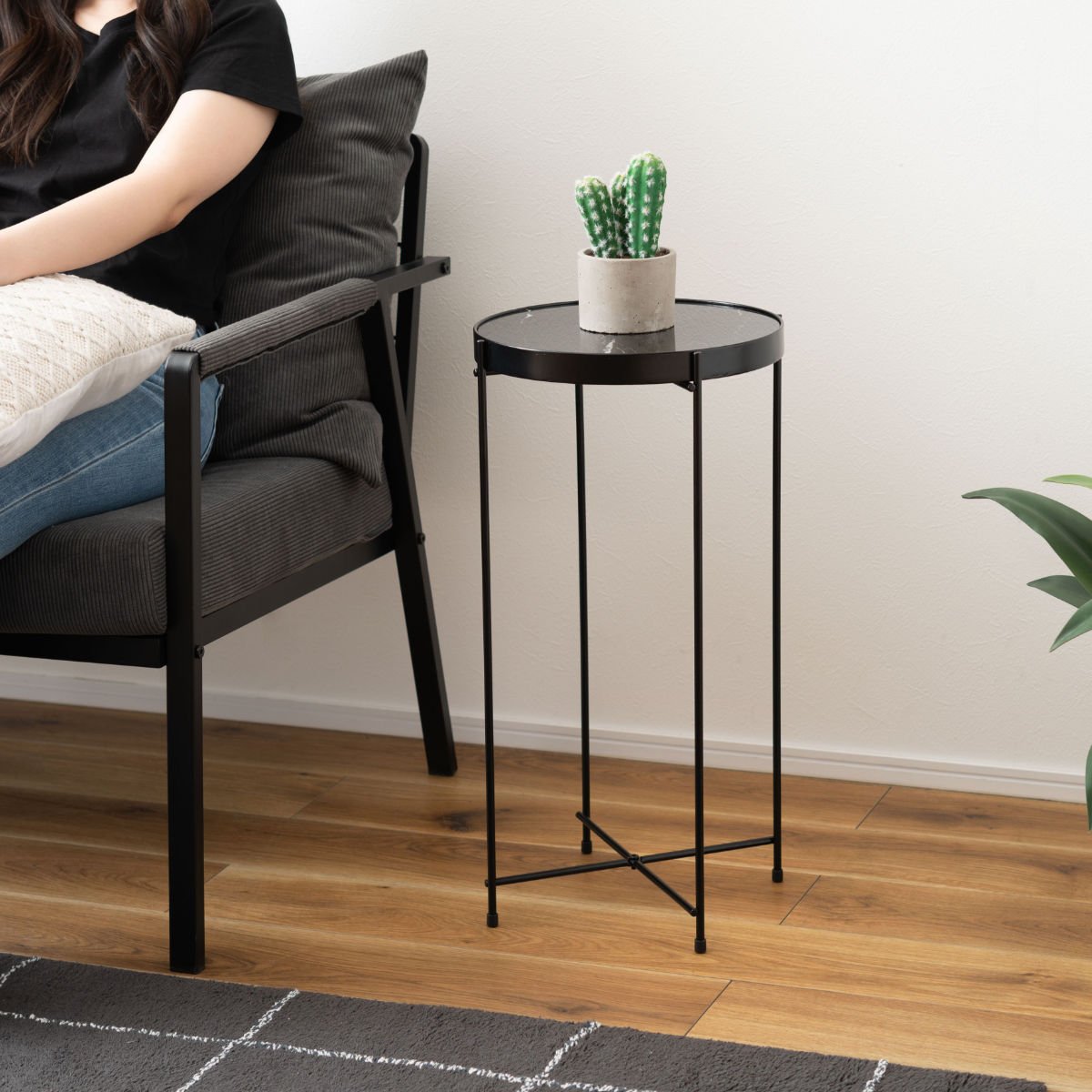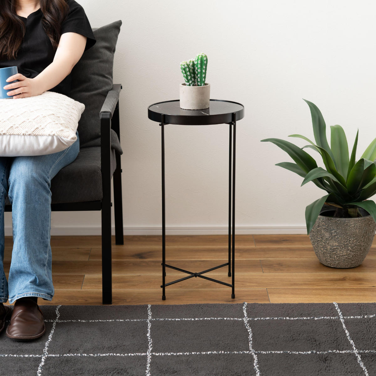 シンプルでスタイリッシュなデザインが魅力的なサイドテーブルです。すべてのパーツを黒色で統一することで、お部屋を引き締めシックでモダンな空間を演出してくれます。アクセントとしても活躍します。