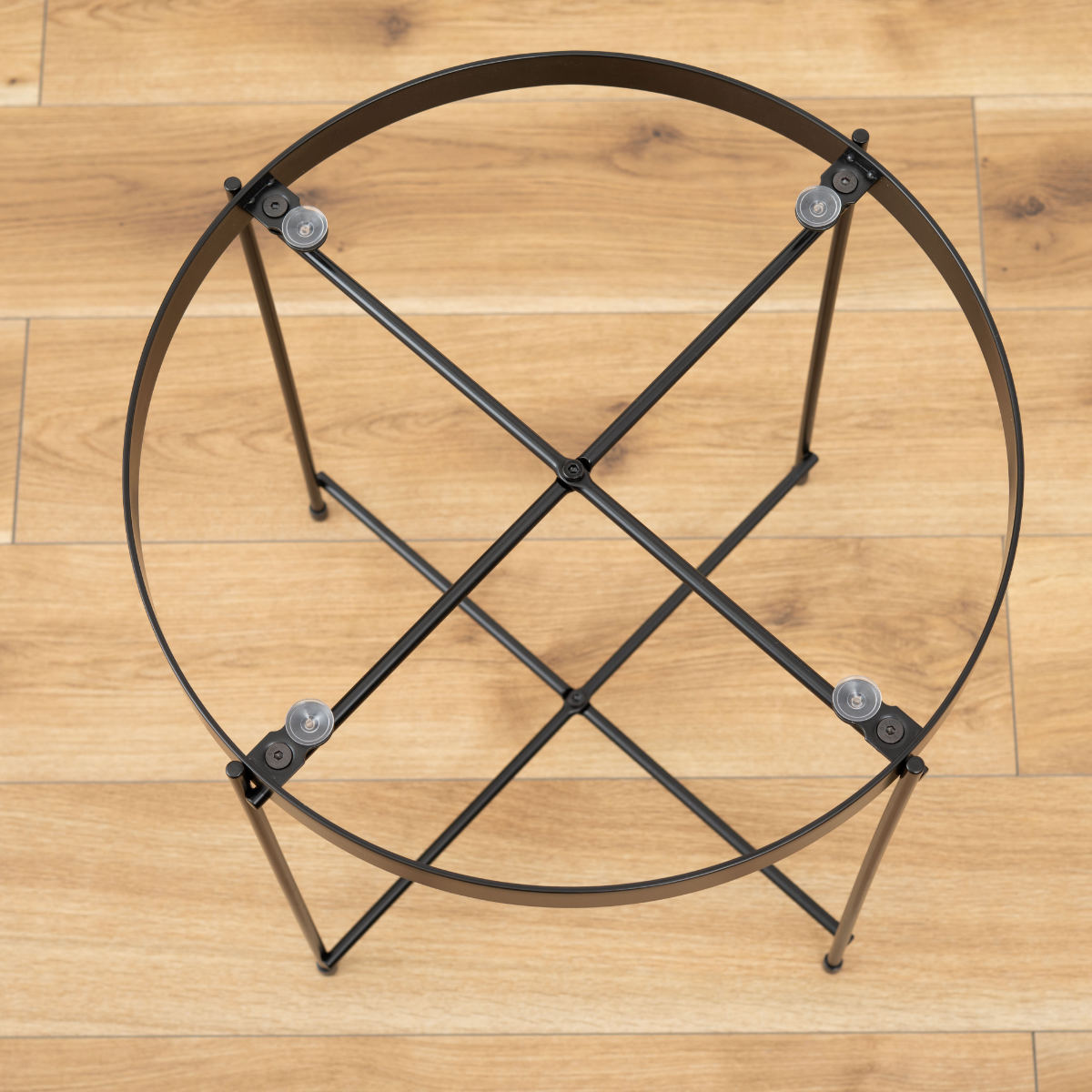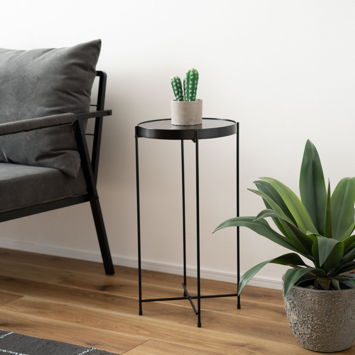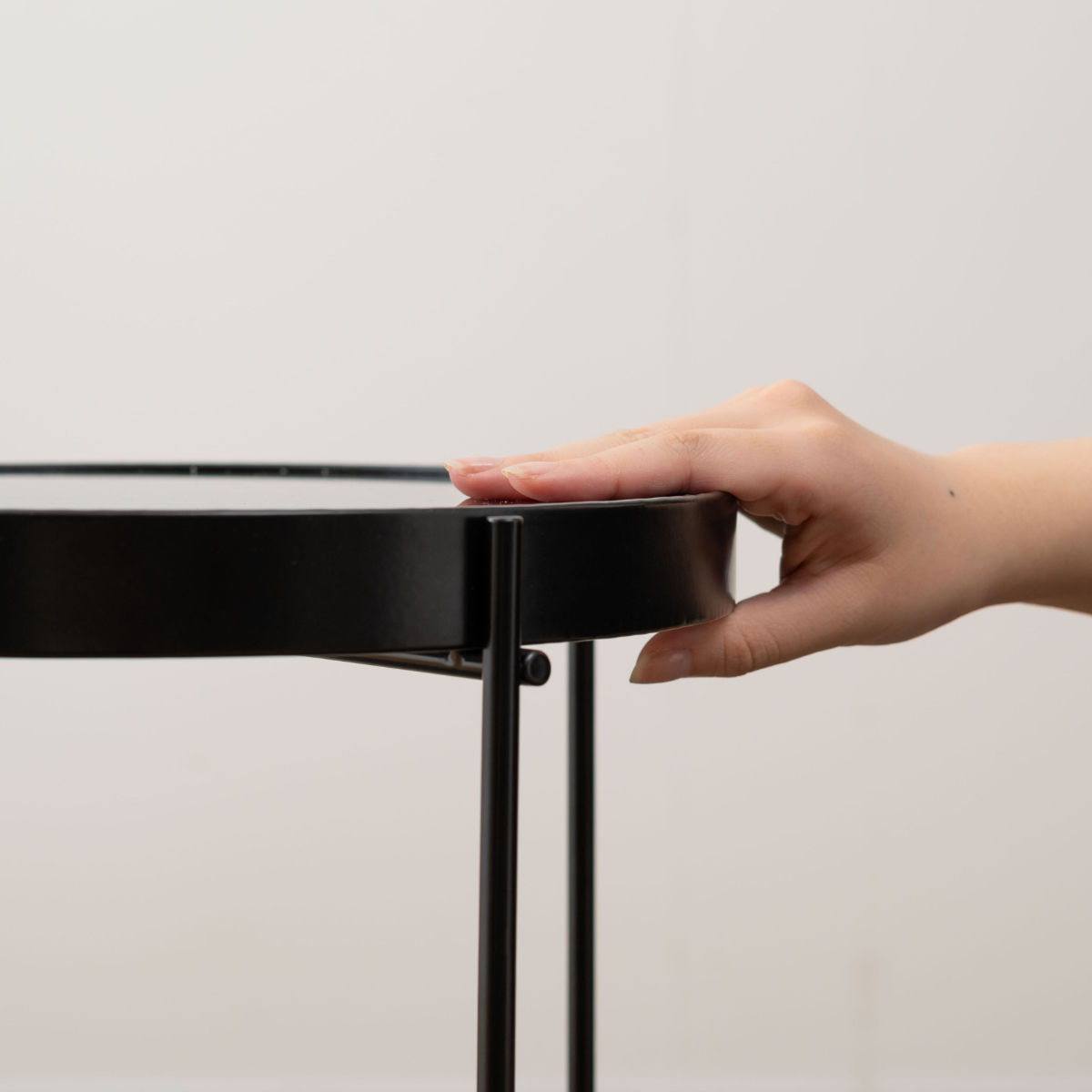シンプルでスタイリッシュなデザインが魅力的なサイドテーブルです。すべてのパーツを黒色で統一することで、お部屋を引き締めシックでモダンな空間を演出してくれます。アクセントとしても活躍します。