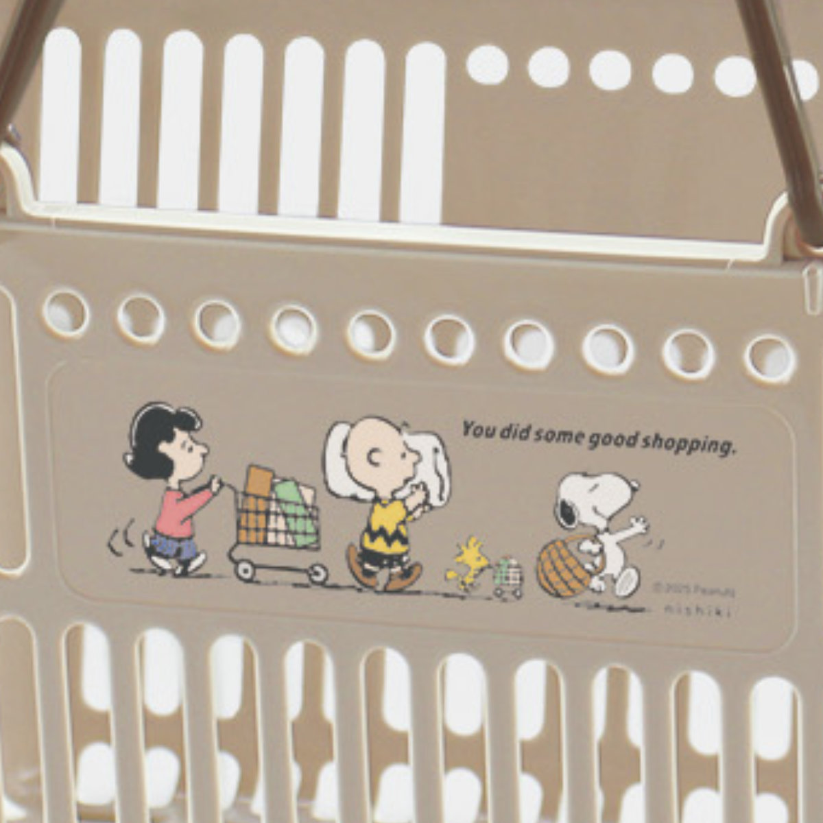 かわいいスヌーピーがデザインされた、大人気のショッピングバスケットがカラーを変えてリニューアルしました。また、ワンポイントでデザインされたスヌーピーのイラストもカラフルになって、より可愛くなりました。可愛くなったバスケットは、ショッピングバスケットだけでなくお部屋の収納にもおすすめです。