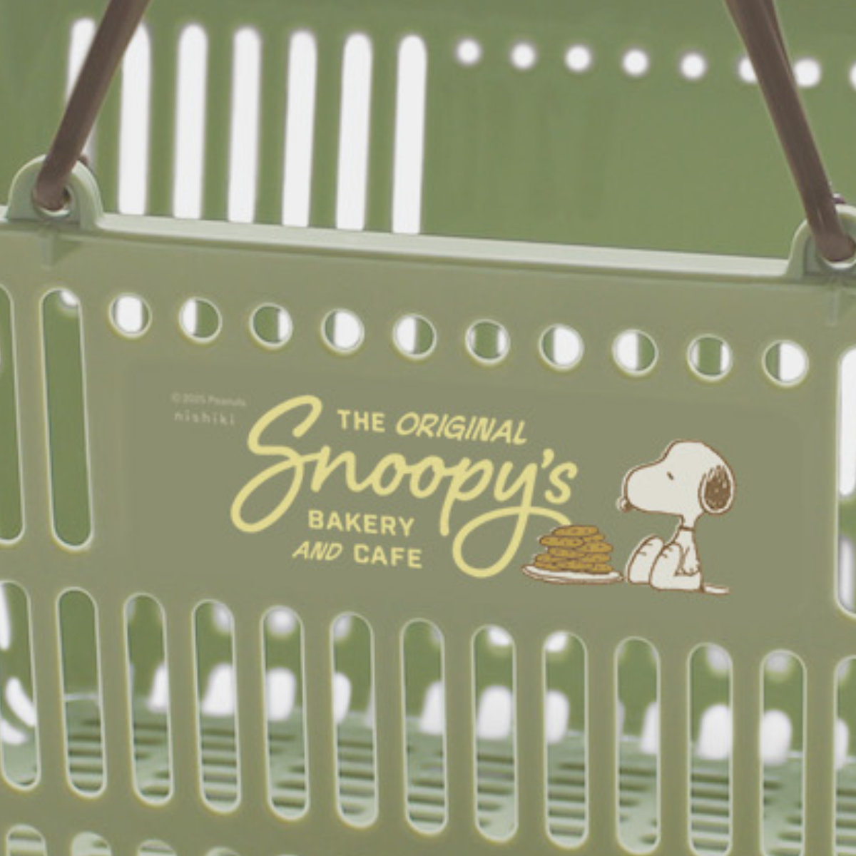 かわいいスヌーピーがデザインされた、大人気のショッピングバスケットがカラーを変えてリニューアルしました。また、ワンポイントでデザインされたスヌーピーのイラストもカラフルになって、より可愛くなりました。可愛くなったバスケットは、ショッピングバスケットだけでなくお部屋の収納にもおすすめです。