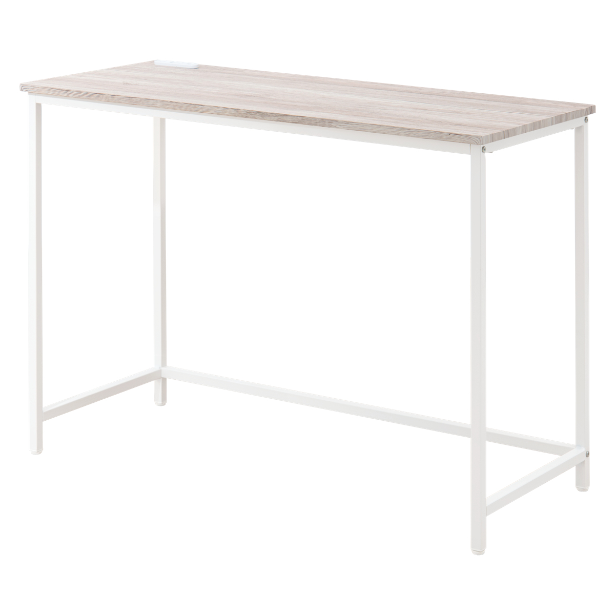 ワークデスク 幅100cm ロングデスク 2口コンセント付 ( スリム デスク 机 シンプルデスク パソコンデスク 木目調 学習机 勉強机 コンセント付き 奥行 45cm スチール脚 ) 【ホワイト】