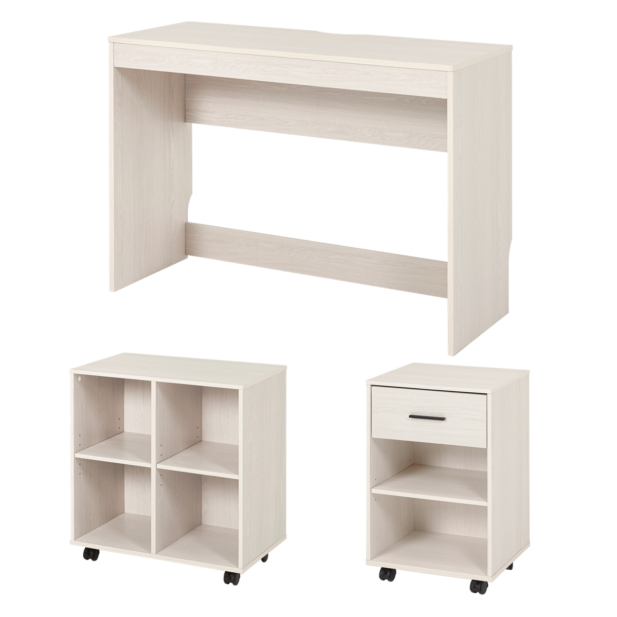 ワークデスク 幅105cm デスク3点セット ラック×1 チェスト×1 ( デスクセット スリム デスク 机 キャビネット デスクワゴン ラック 棚 収納 セット 奥行 40cm 学習机 勉強机 コンパクト おしゃれ シンプル ) 【ウォッシュホワイト】