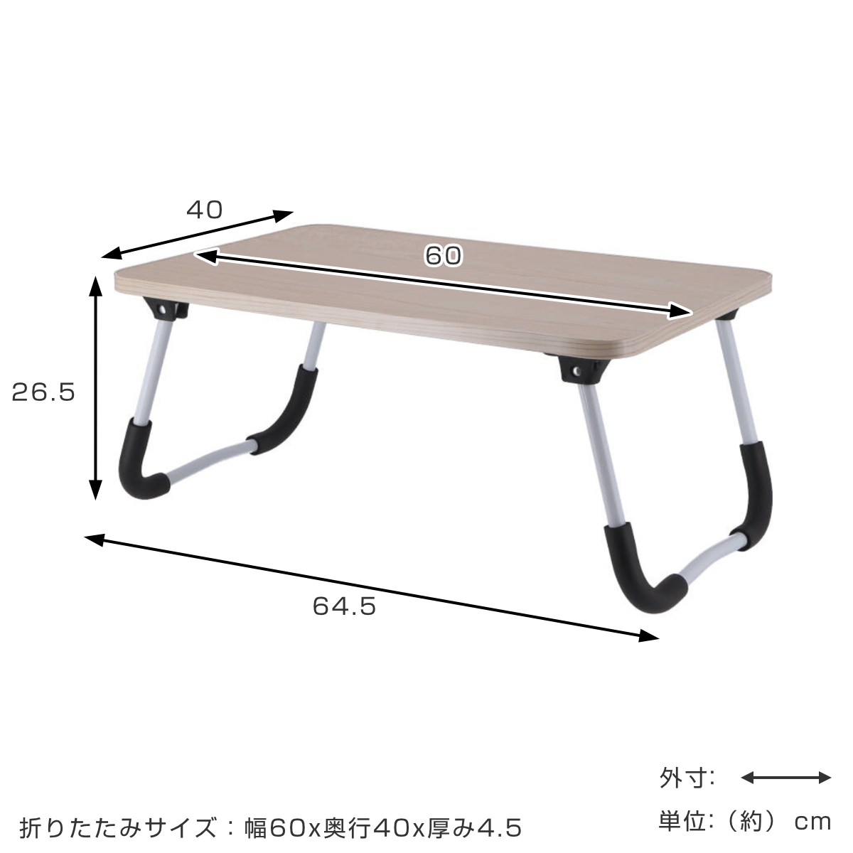 ミニテーブル 折りたたみ 幅64.5cm 高さ26.5cm ( 1人用 ベッドテーブル サイドテーブル テーブル ナイトテーブル ソファ ベッド 横 ノートパソコン 介護 子供 小さい 持ち運び 軽量 コンパクト )