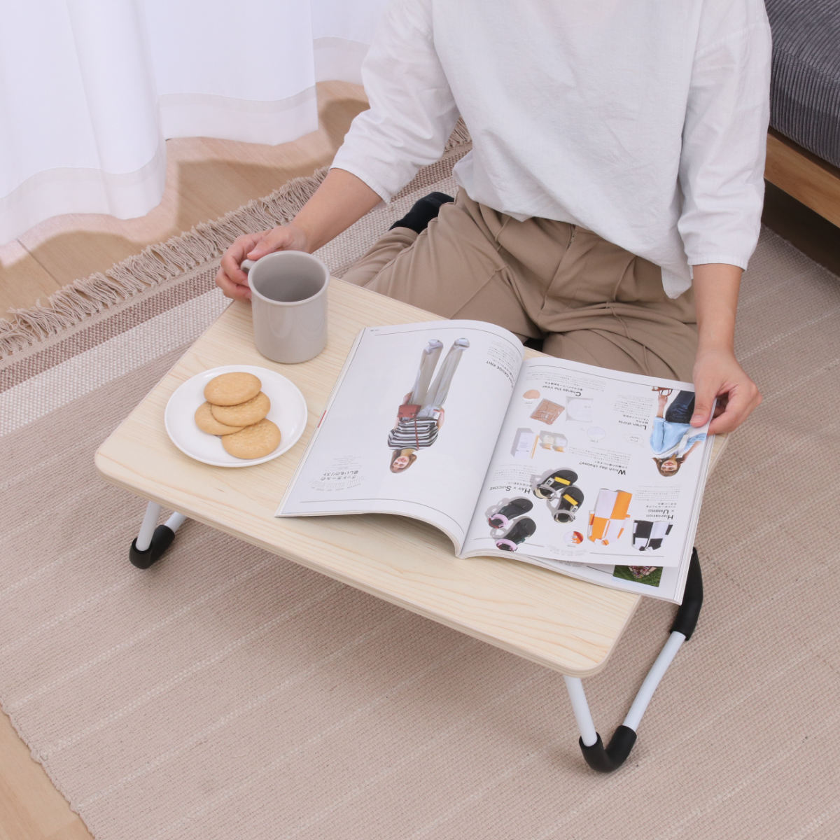 軽くてコンパクトなので、ベッドやソファに座りながら使えるテーブルです。ちょっと作業したい時にサッと取り出して使える手軽さが嬉しいポイントです。タブレットを使ったり、読書する時などにもピッタリです。