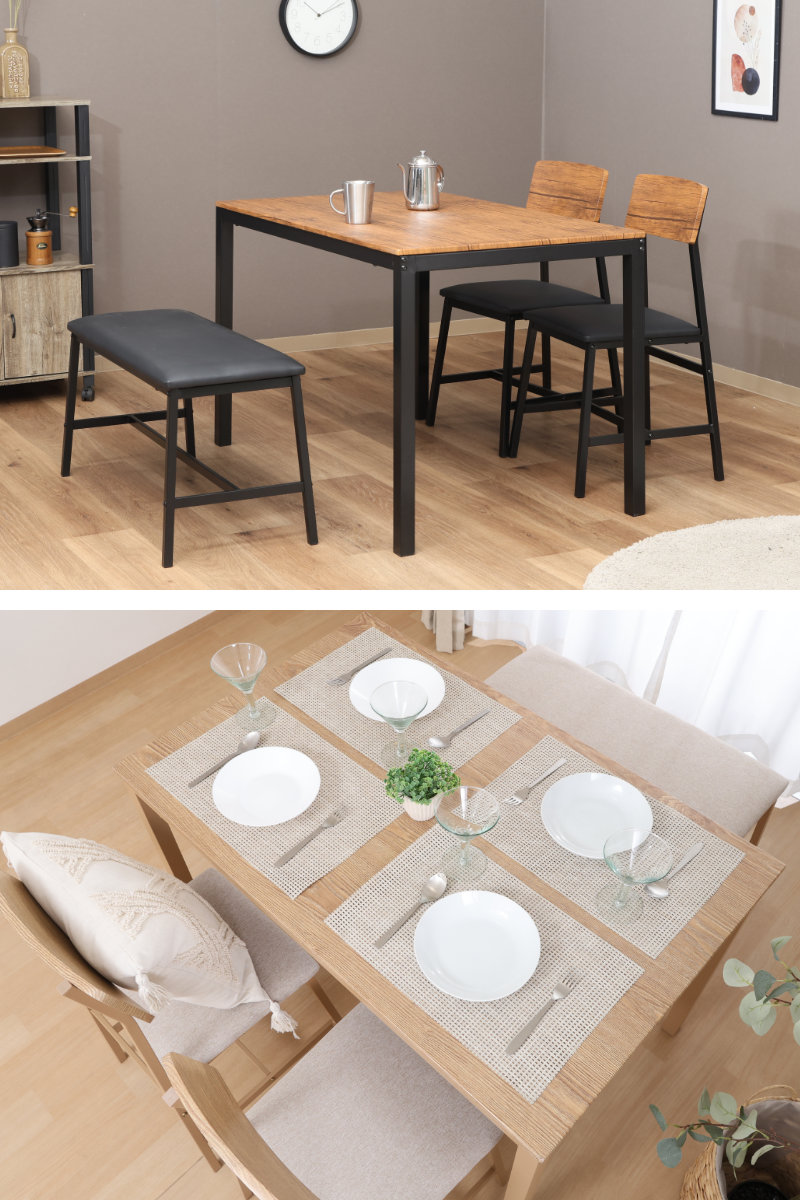 ベンチとチェアの組合せが嬉しいダイニングセット