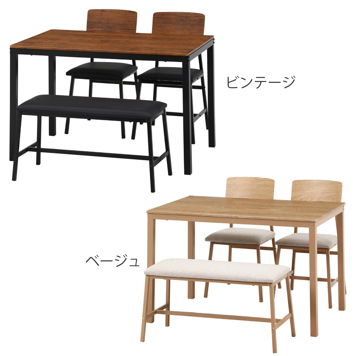 ダイニングテーブルセット 4人掛け 4点セット テーブル幅110cm チェア×2 ベンチ×1 マリー ( ダイニングセット 長方形 テーブル 椅子 ベンチ セット ビンテージ調 ナチュラル レザー調 ファブリック ベージュ ) 【ビンテージ】