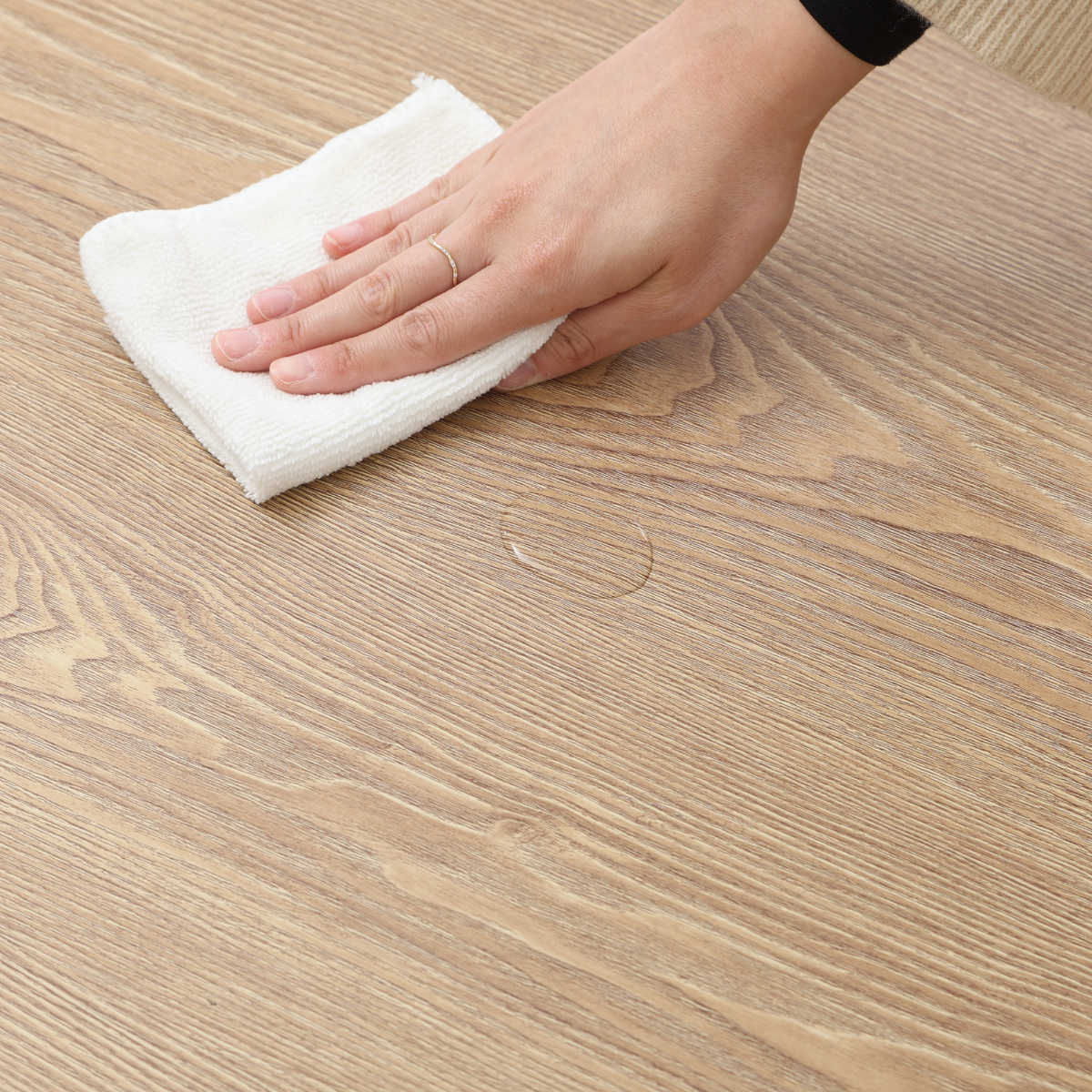 天板の表面は水や汚れに強いPVCシートです。飲み物などをこぼしてもサッと拭くだけでキレイになり、お手入れも簡単です。