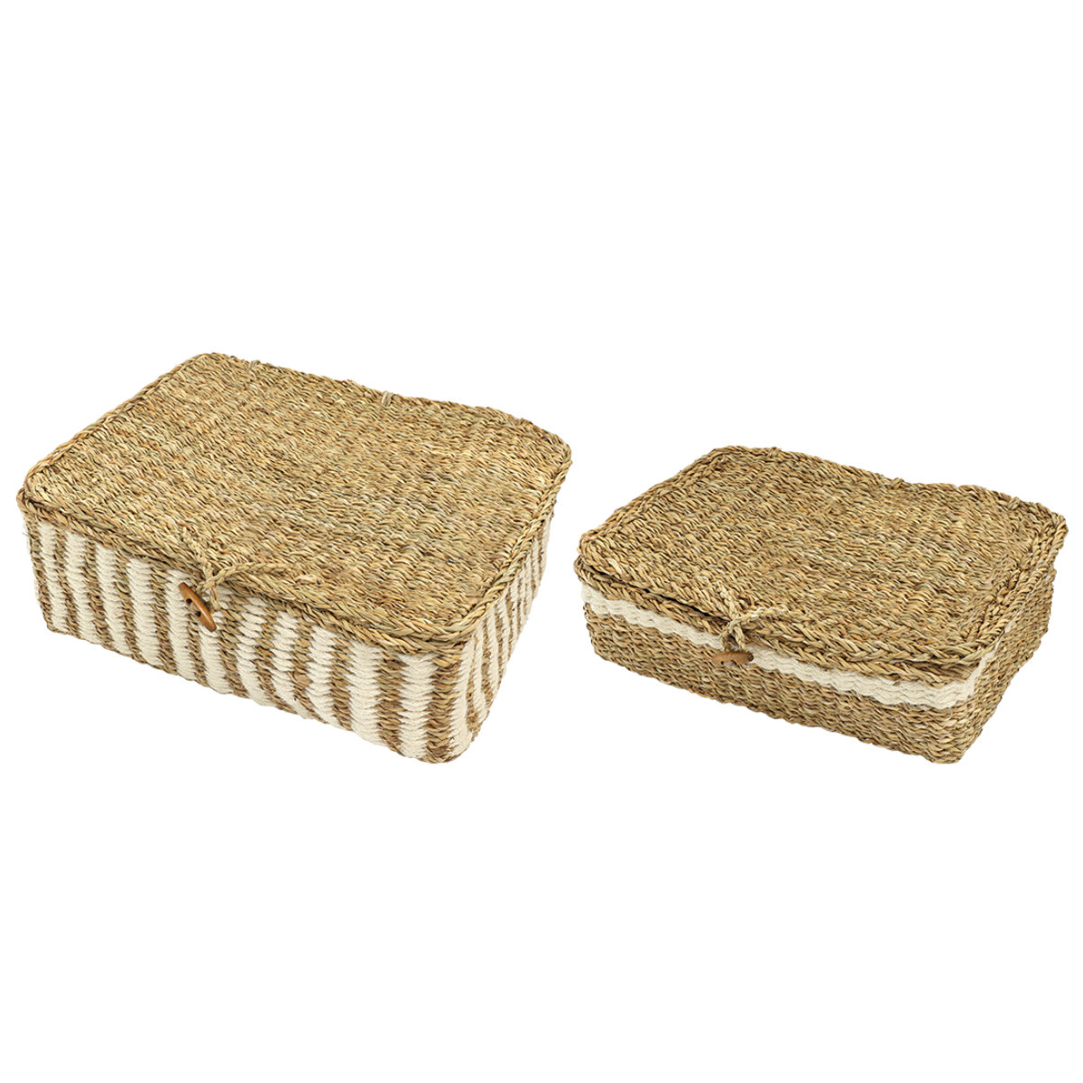 かご レクタングル ふた付き ストレージ M L 2個組 ( バスケット カゴ 収納 小物収納 フタ ジュート シーグラス ハンドメイド 籠 小物ケース 収納バスケット 麻 水草 ナチュラル 手編み 手作り )
