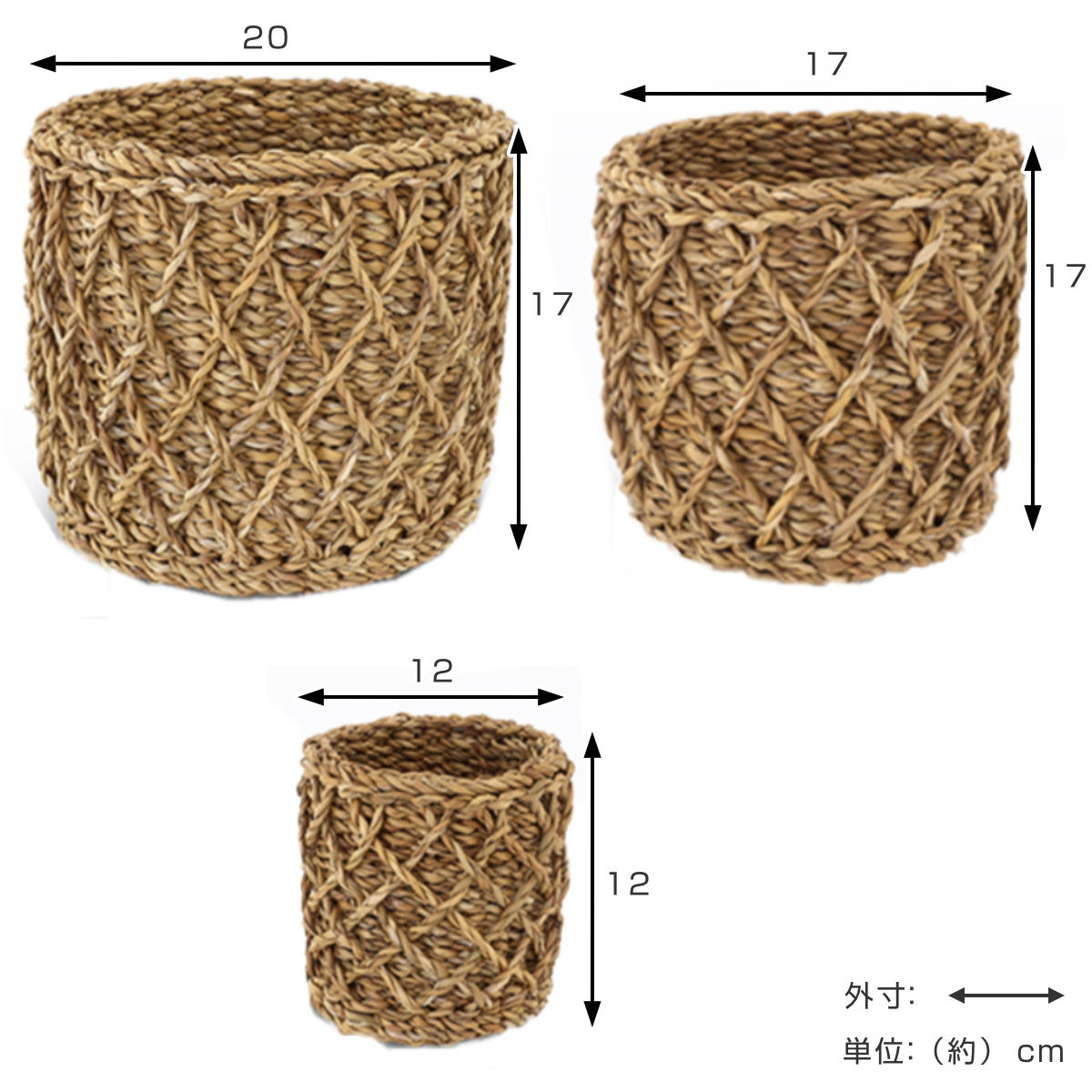 | サイズ | S:約 直径12×高さ12(cm) M:約 直径17×高さ17(cm) L:約 直径20×高さ17(cm) |