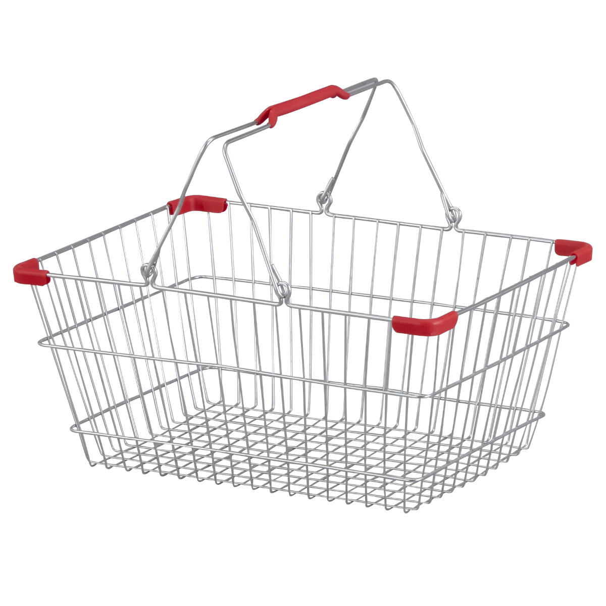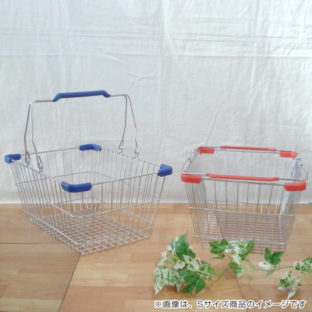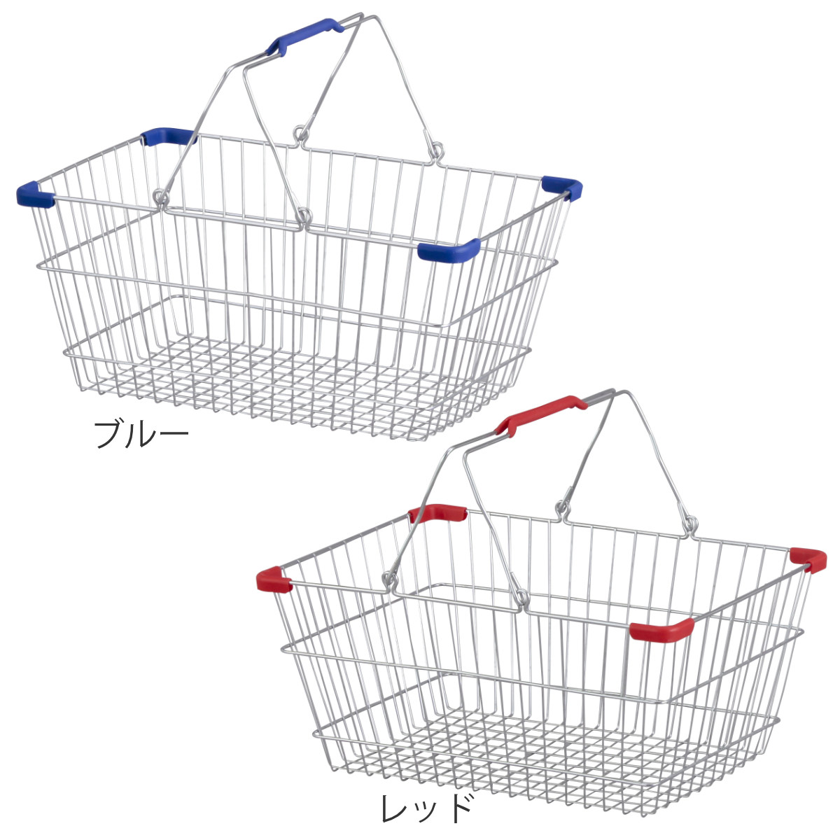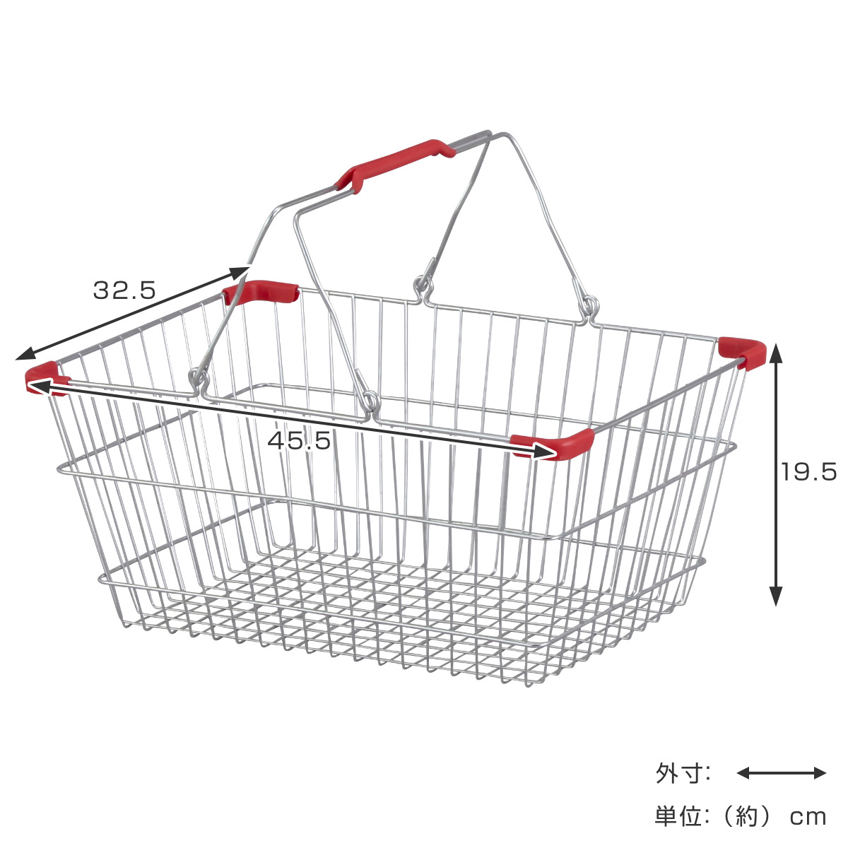レジかご ワイヤープラスチック ハンドル L 幅45.5×奥行32.5×高さ19.5cm ( ワイヤーバスケット バスケット かご 収納バスケット 収納ボックス 収納ケース 収納 カゴ 角型 持ち手付き 小物収納 小物入れ ディスプレイ おしゃれ ) 【レッド】