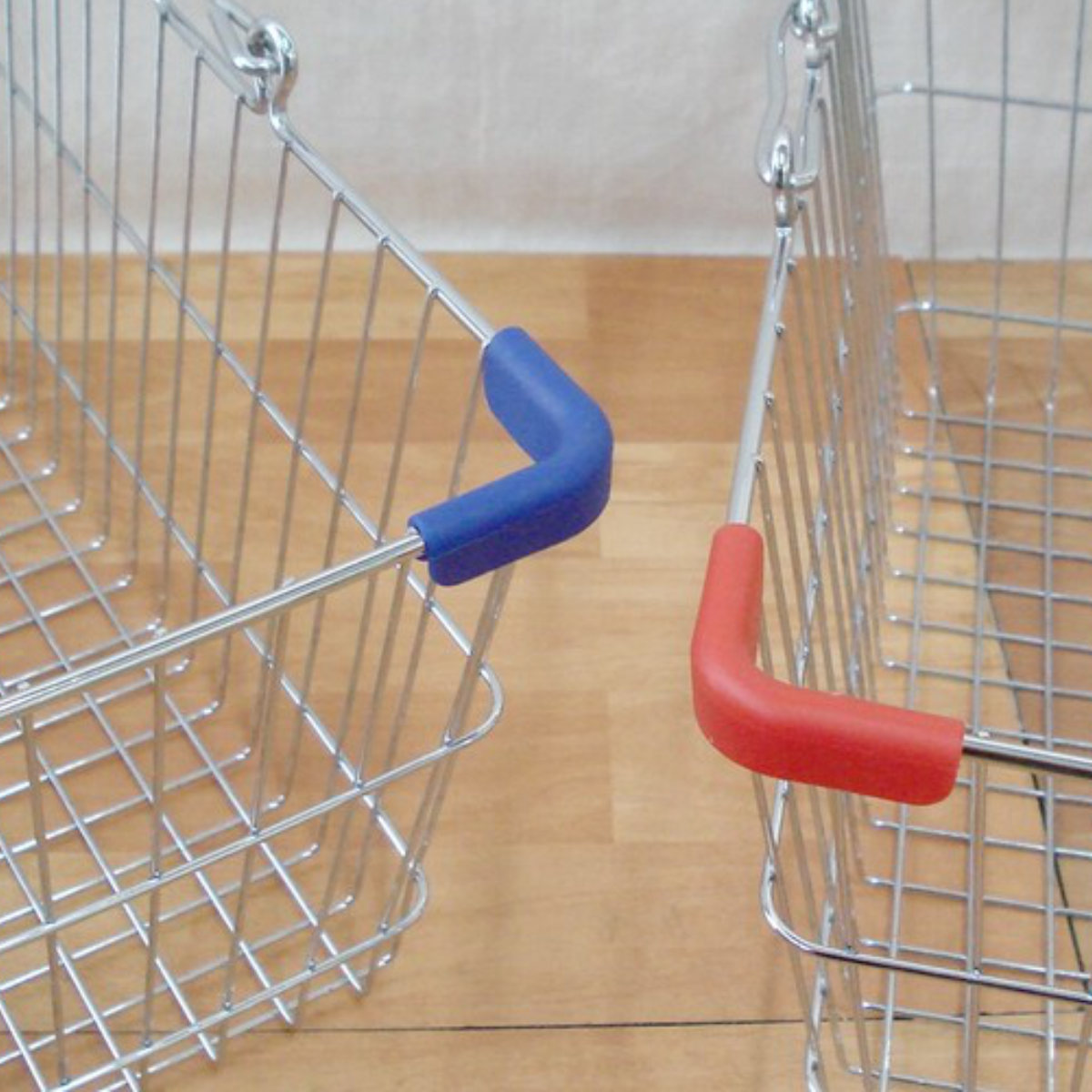 シンプルでサイズのバリエーションが豊富なワイヤーバスケットは、ご家庭内だけでなく店内カゴとしてや、お店のディスプレイ用としてもおすすめです。ハンドルの持ち手部分とバスケットのコーナーに付いたポップなカラーのプラスチックパーツが、バスケットのアクセントになっています。