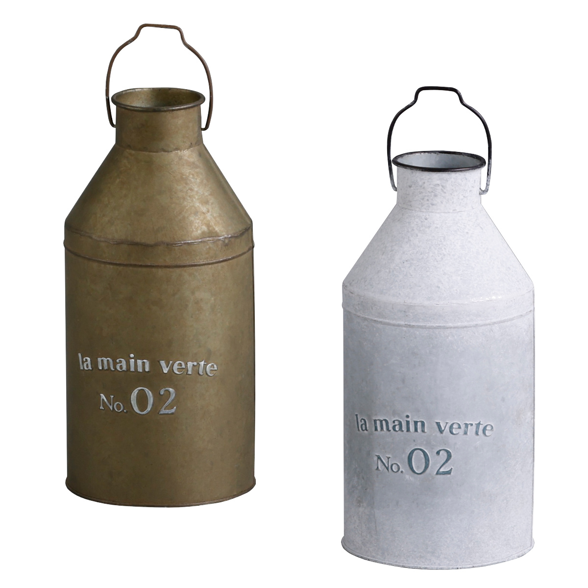 ミルクポット オーナメント グランディール L ( プランター 花瓶 花びん 植木鉢 プラントポット 植物用ポット 花器 ポット ブリキ ジョウロ ブリキ鉢 アイアン 植物 花 ドライフラワー 観葉植物 園芸 インテリア 卓上 ) 【ホワイト】