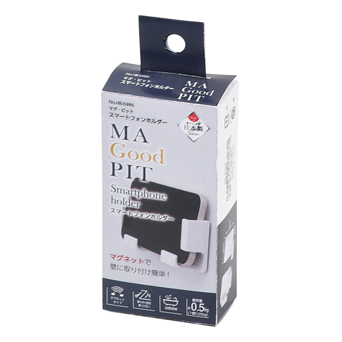 スマートフォンホルダー マグ・ピット マグネット ( スマホホルダー 磁石 壁掛け 浴室 キッチン 日本製 マグネット収納 スマートフォン 浮かす 便利 スマホスタンド お風呂 シンプル ホワイト )