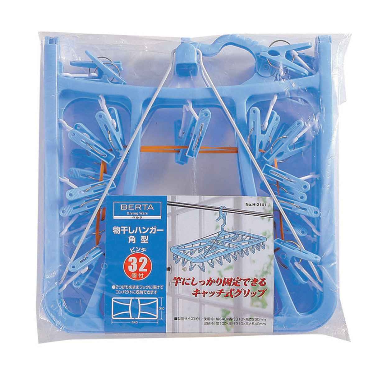 洗濯ハンガー ベルタ 角ハンガー ピンチ32個付 ( 洗濯 ハンガー ピンチハンガー 折りたたみ キャッチフック式 物干しハンガー 洗濯バサミ 32個 キャッチフック コンパクト 収納 )