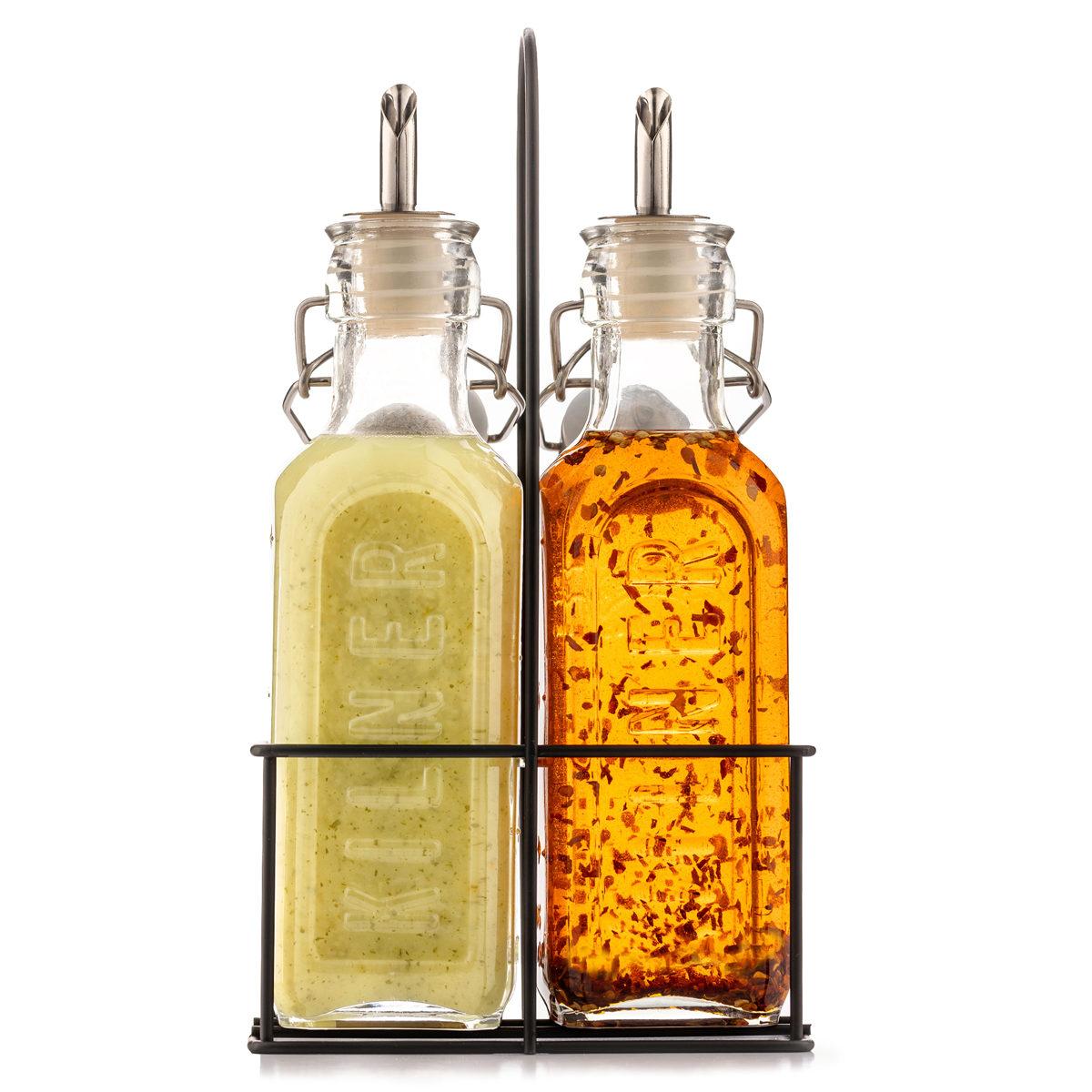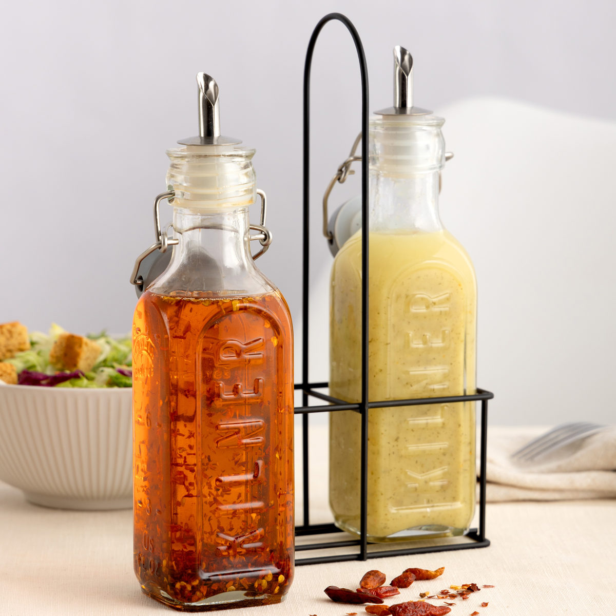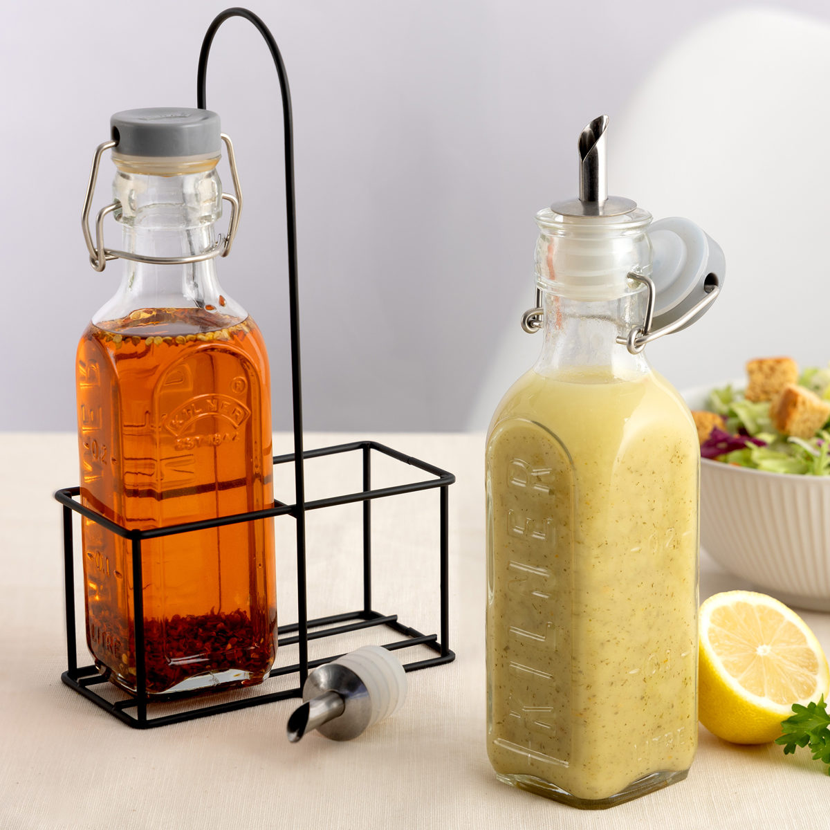 調味料入れ KILNER 300ml 2本セット Oil Bottles & Metal Rack ( キルナー 調味料ボトル オイルボトル ビネガーボトル ヴィネガーボトル ガラスボトル 台付き 食洗機対応 液だれしにくい おしゃれ )