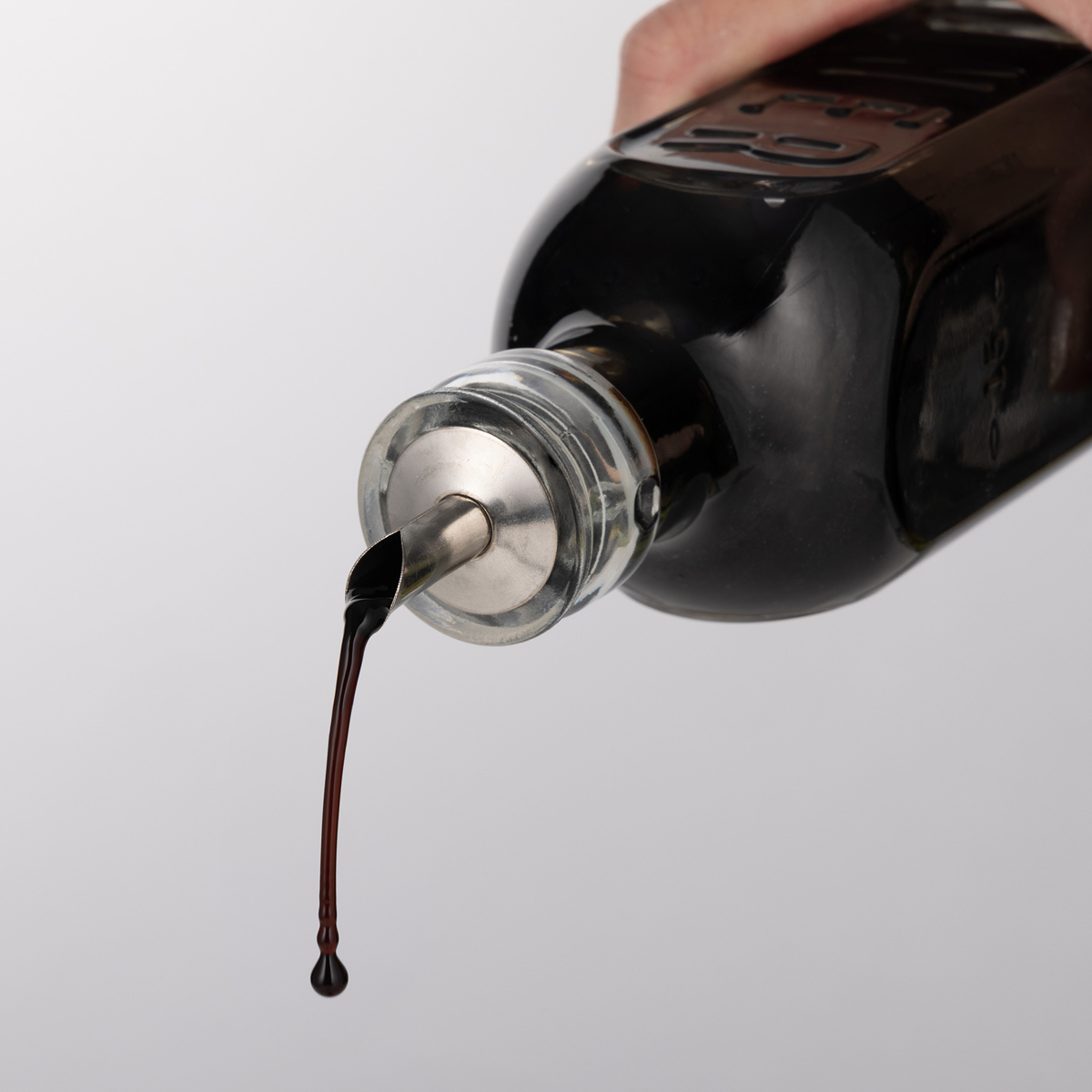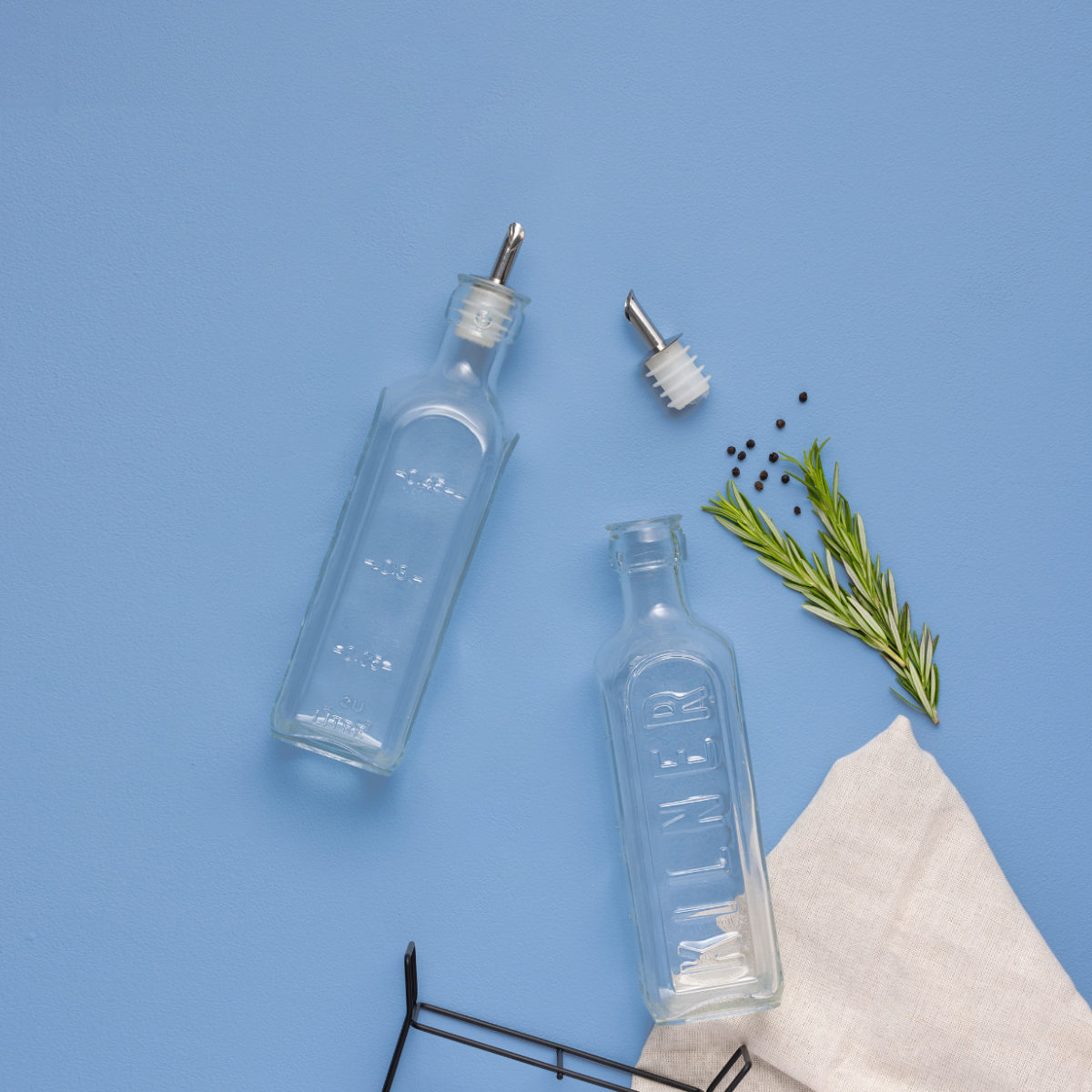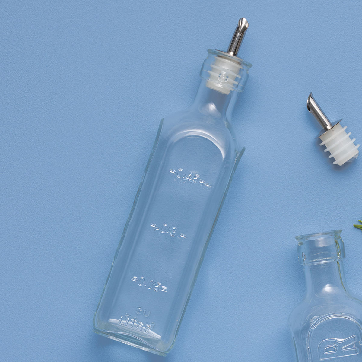 本体ボトルは、色やニオイが付きにくいソーダガラス製です。プラスチック製と比べて、香りの強いガーリックやハーブ類を入れても、ニオイ移りの心配もありません。油汚れも簡単に落とせるので、長く衛生的に使用できます。