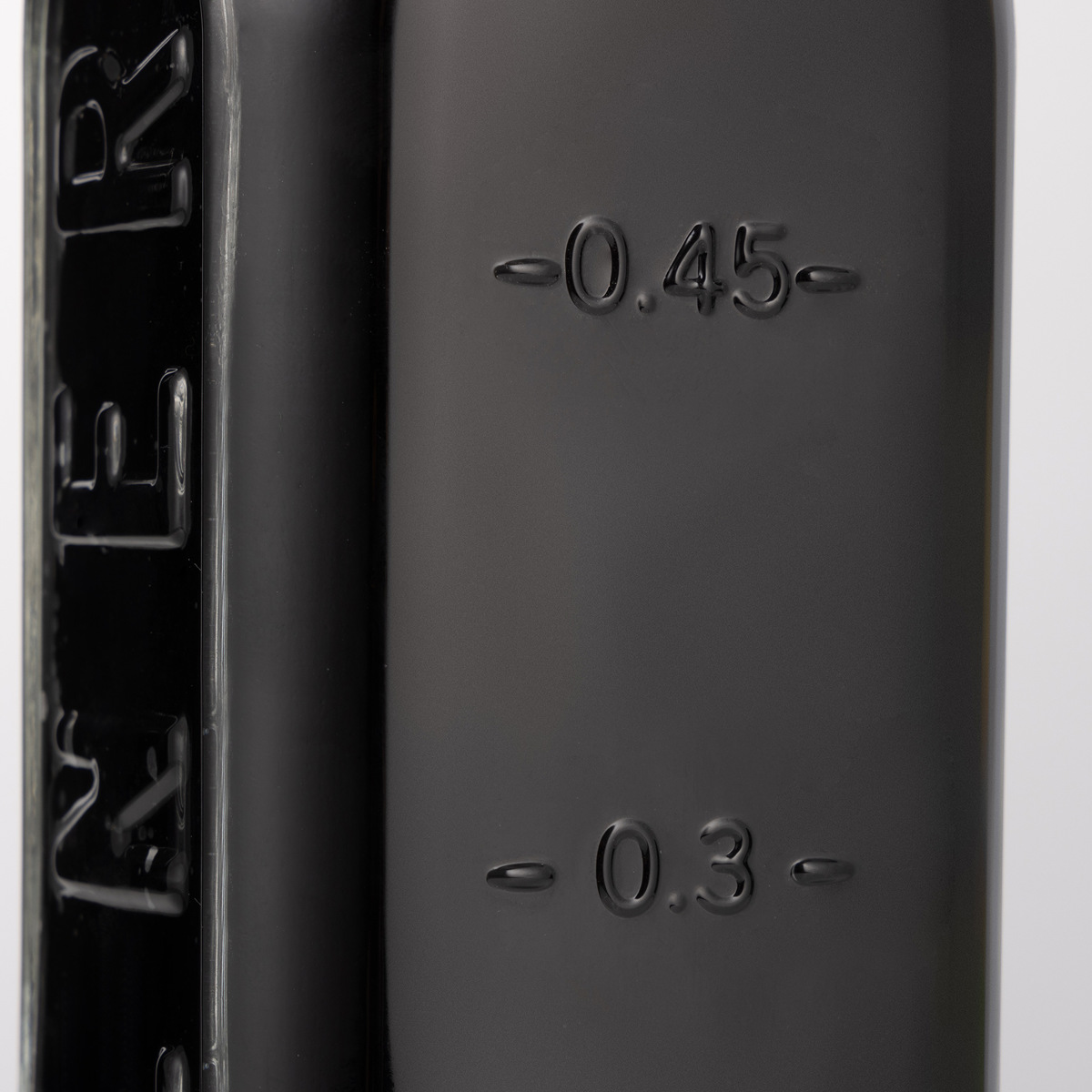ボトル側面には目盛り付きで、残量が一目で確認できます。容量表記は、日本人に馴染みのあるリットル表記、外国で使用されるオンス表記の2つが刻印されています。自家製ドレッシングやオイルを作る時にも、計量カップ不要で便利です。