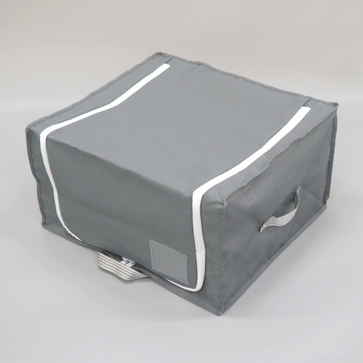 従来の不織布製の柔らかい収納袋の一面を持ちつつも、収納ケースのように積み重ねての使用を可能にした新形態の衣類収納袋です。