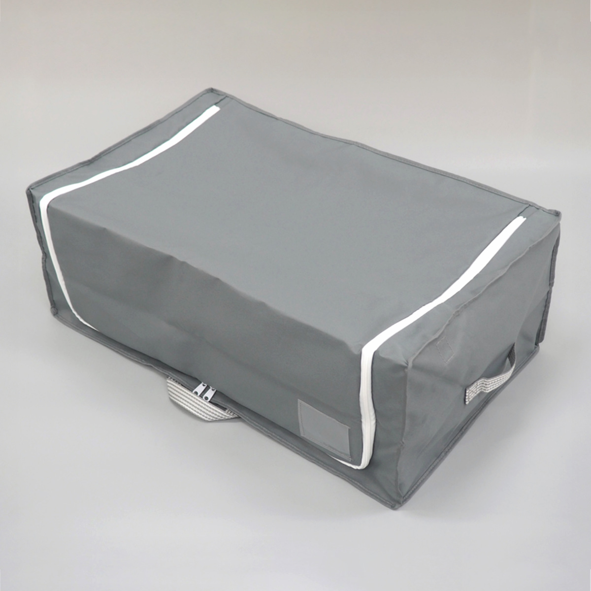 従来の不織布製の柔らかい収納袋の一面を持ちつつも、収納ケースのように積み重ねての使用を可能にした新形態の衣類収納袋です。