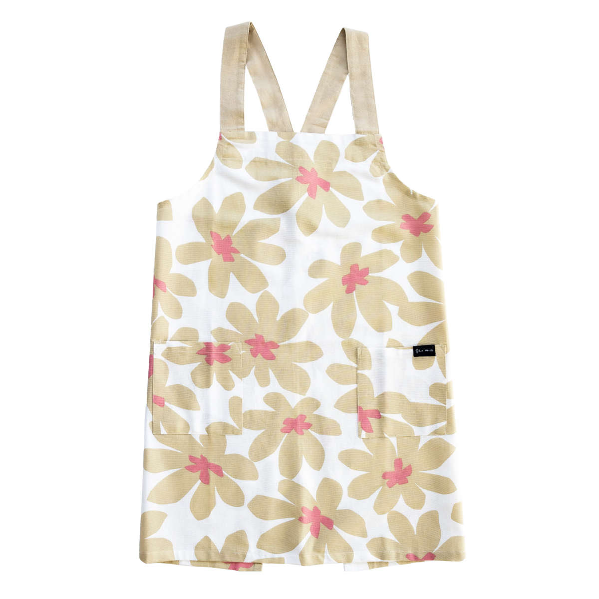 エプロン ラ・エミーズ クッカ ボタニカル 井上絵美 ( LA AMYS キッチンエプロン 台所エプロン バッククロス フリークロス 綿100% ポケット付き 胸当てエプロン かぶるだけ たすき掛け 大人用 レディース インド綿 ) 【ベージュ】