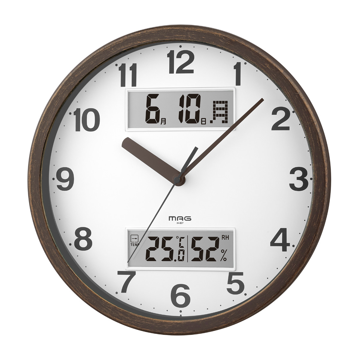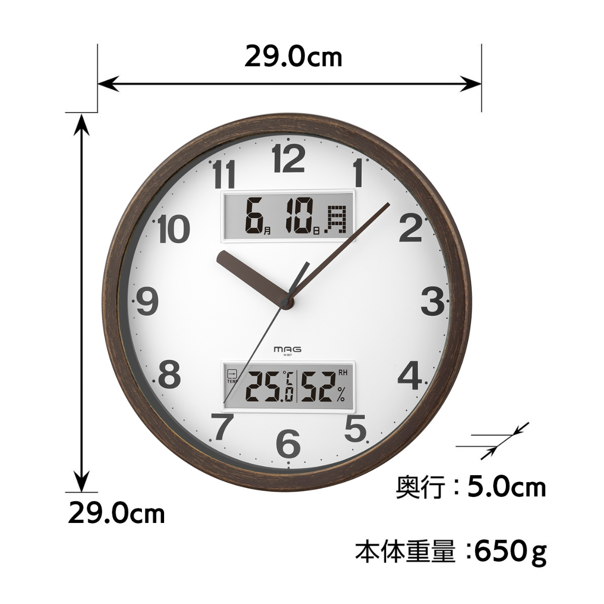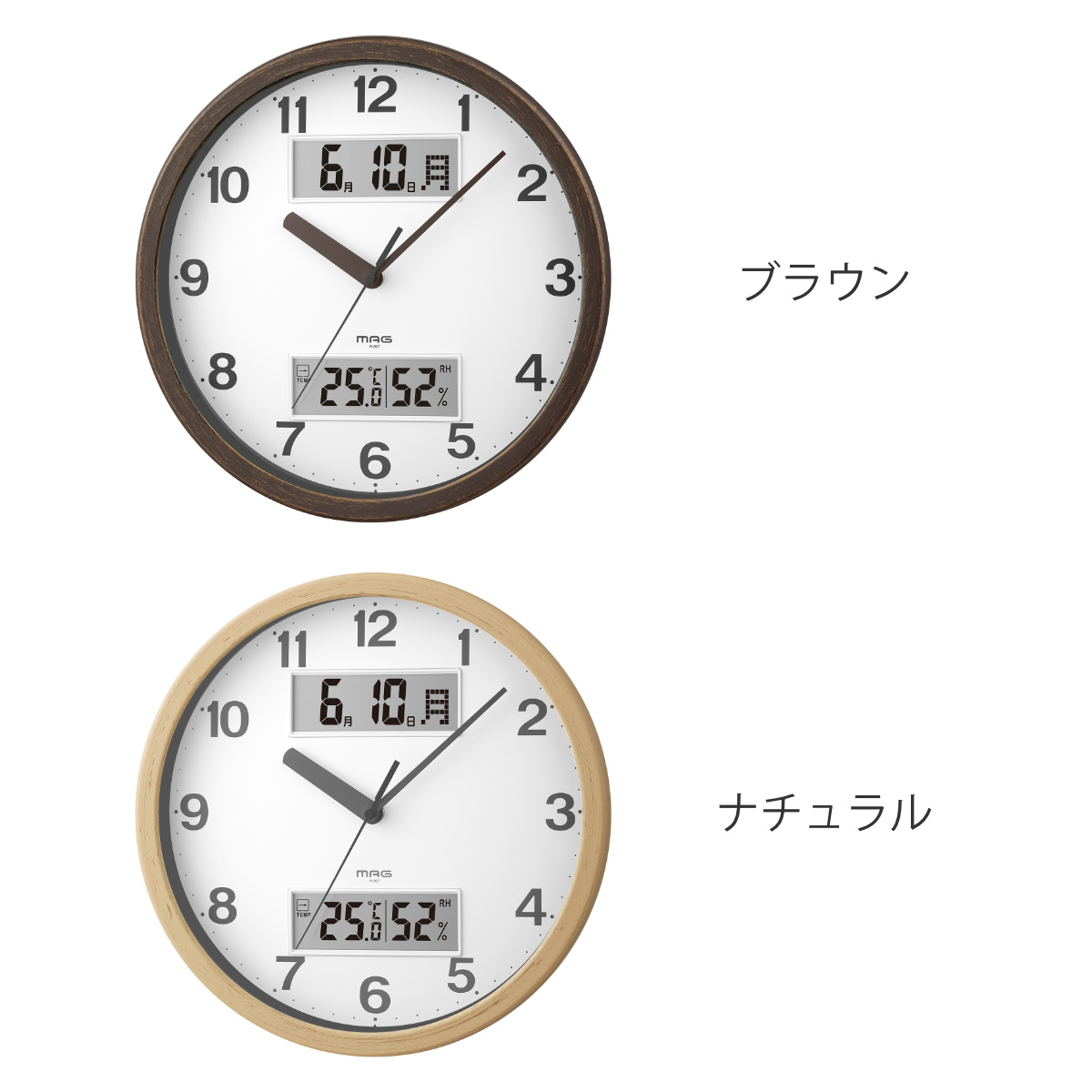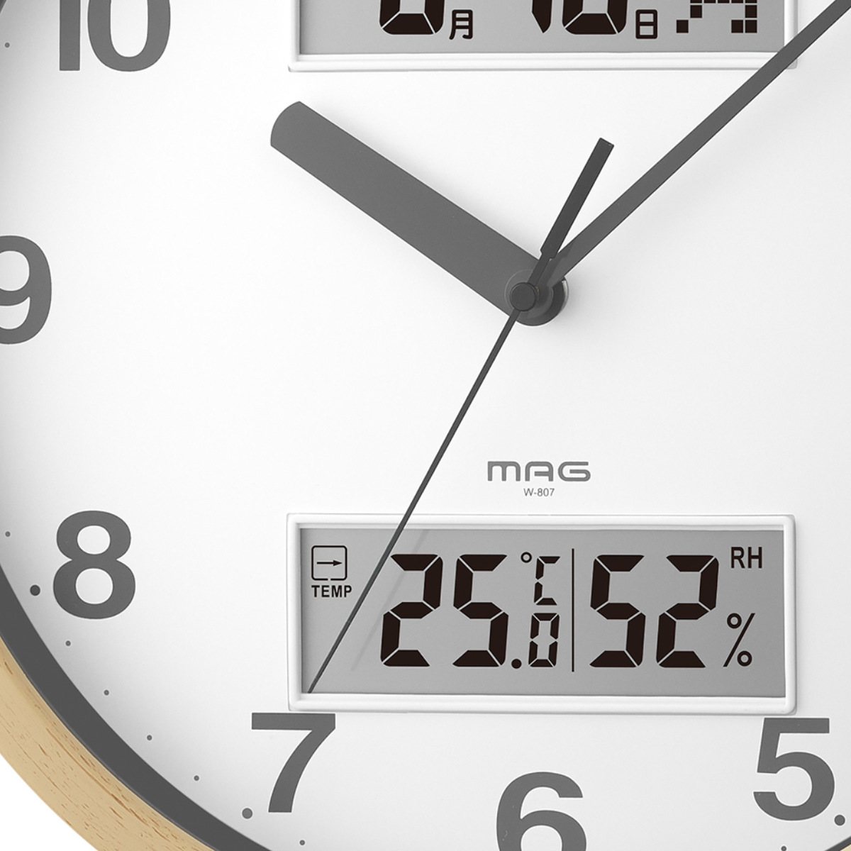 掛け時計 MAG ダブルポイント 連続秒針 カレンダー付き 温湿度計付き ノア精密 ウォールクロック ( 時計 壁掛け カレンダー 温度計 湿度計 日付 曜日 見やすい 壁掛け時計 静か 音がしない アナログ時計 直径29cm ) 【ナチュラル】