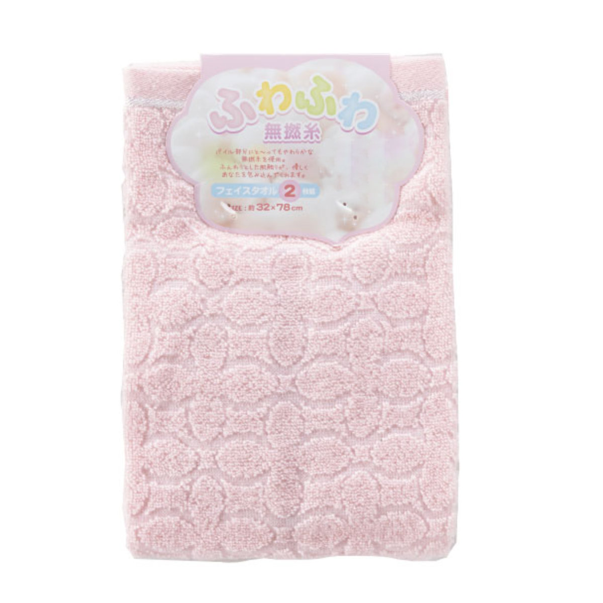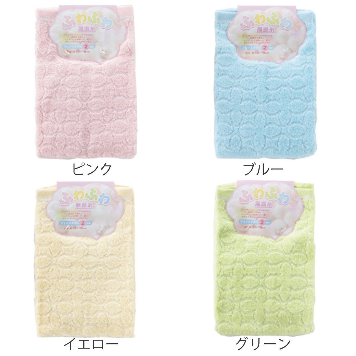 フェイスタオル ふわふわ無撚糸 2枚 ( タオル 顔拭き 手拭き デイリー 2枚組 セット 綿100 無撚糸 やわらかい ふんわり 顔拭きタオル デイリータオル 手ふき 2枚入 34×78 ピンク ブルー イエロー グリーン ) 【ピンク】