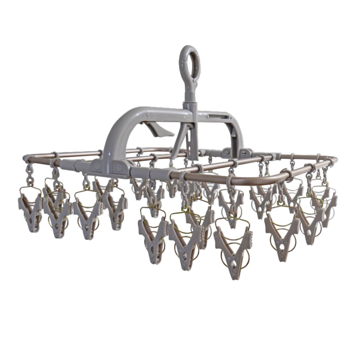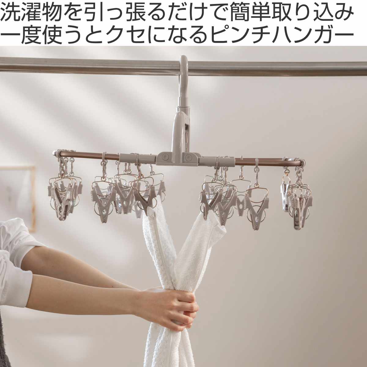 洗濯ハンガー ALUMI HANGER アルミランドリーハンガー 角ハンガー 24ピンチ ( 洗濯 ハンガー 物干しハンガー 引っ張るだけ ピンチハンガー 折りたたみ 洗濯バサミ 24個 アルミ製 軽量 キャッチフック ドアフック付き 可動式 ピンチ )