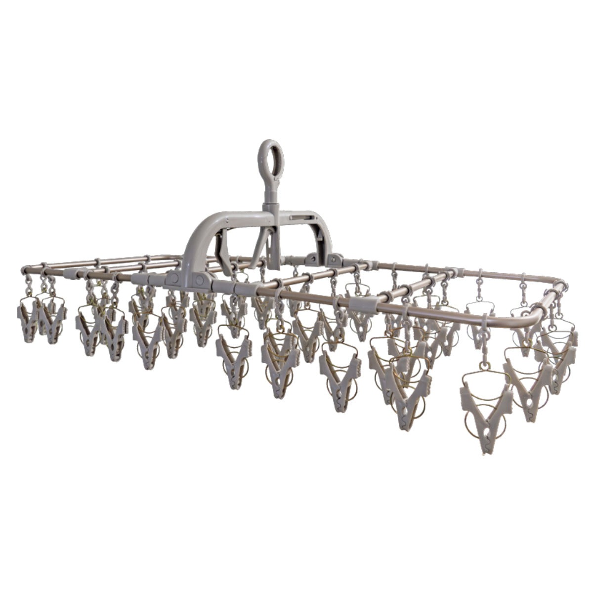 洗濯ハンガー ALUMI HANGER アルミランドリーハンガー 角ハンガー 42ピンチ ( 洗濯 ハンガー 物干しハンガー 引っ張るだけ ピンチハンガー 折りたたみ 洗濯バサミ 42個 アルミ製 軽量 キャッチフック ドアフック付き 可動式 ピンチ )