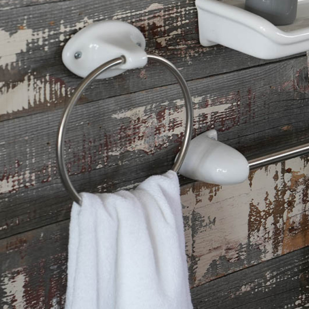 ●磁器×ステンレスで清潔感があるタオルリングです。
