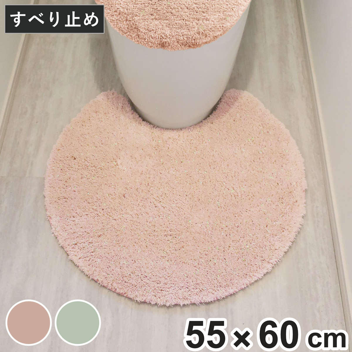 トイレマット メリージェラート グリッター 55×60cm ( トイレ マット 足元マット 洗える すべり止め ラウンド トイレタリー 滑り止め 55×60 洗濯OK パステルカラー ピンク ミント ) 【ピンク】