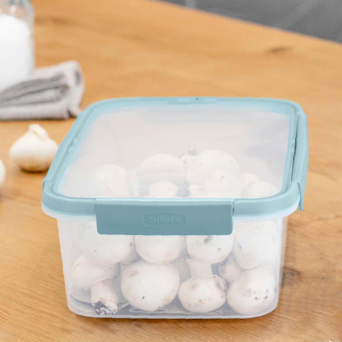 フタも容器も透明で中身が見える、積み重ね可能な保存容器