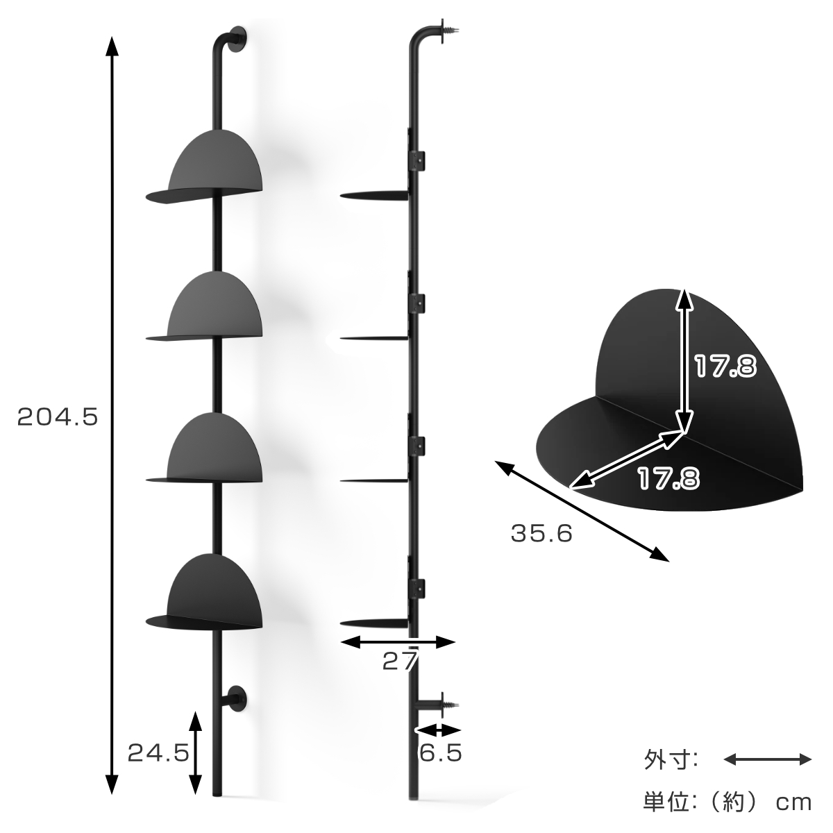棚 壁 ソリス アジャスタブル シェルフ 4個 幅35.6×奥行27×高さ204.5cm ( Umbra アンブラ 壁面収納 ウォールシェルフ 飾り棚 ディスプレイ 見せる収納 ディスプレイラック ウォールラック おしゃれ 収納 リビング 玄関 )