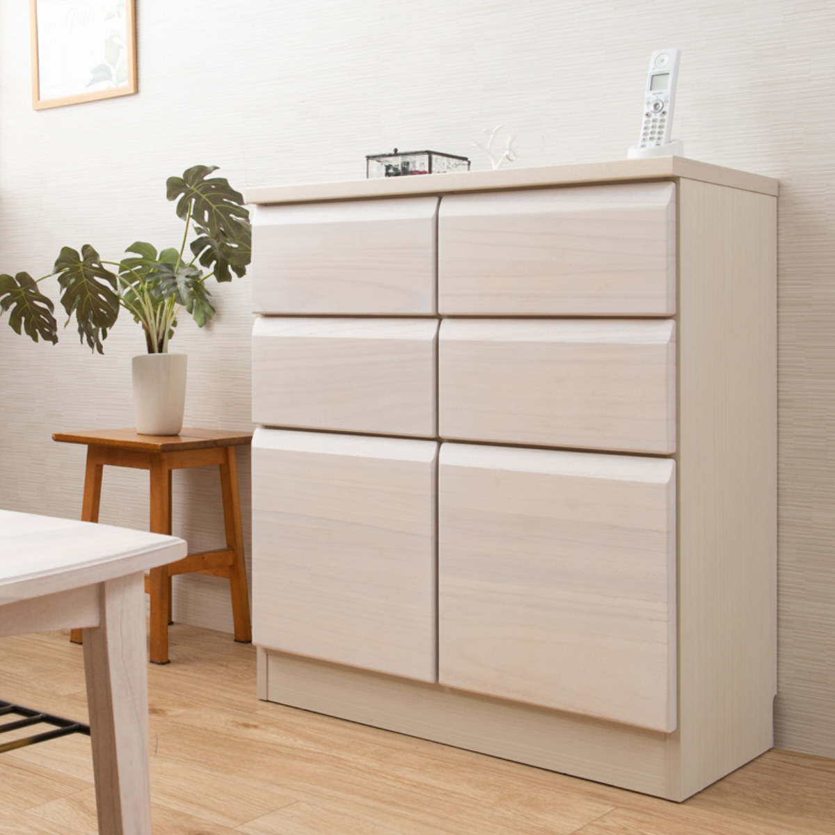 | 材質 | 前板:天然木桐材(ウレタン樹脂塗装) 天板:強化プリント紙化粧繊維板 その他:プリント紙化粧繊維板 |