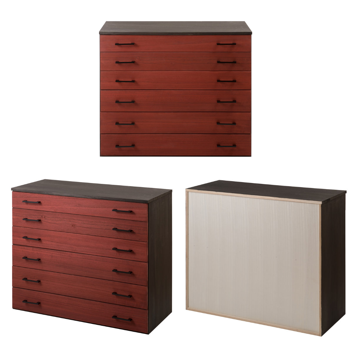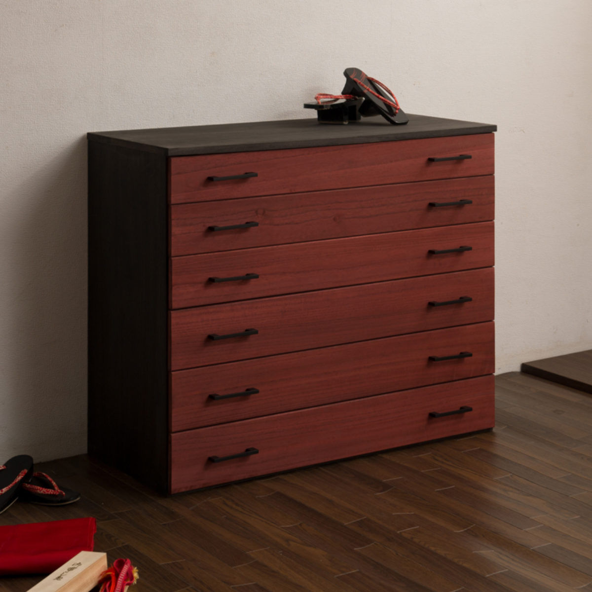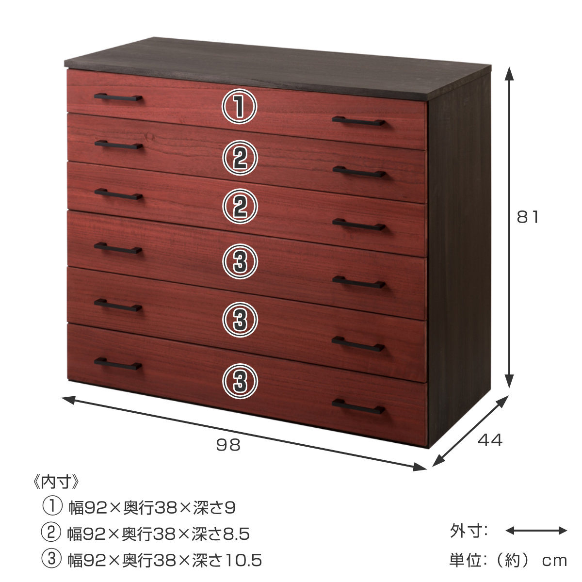桐タンス 幅98cm 6段 朱色 朱雀 日本製 ( 桐 たんす 天然木 防虫 調湿 上置き兼用 完成品 チェスト 着物収納 桐たんす たとう紙 総桐 六杯 引き出し )