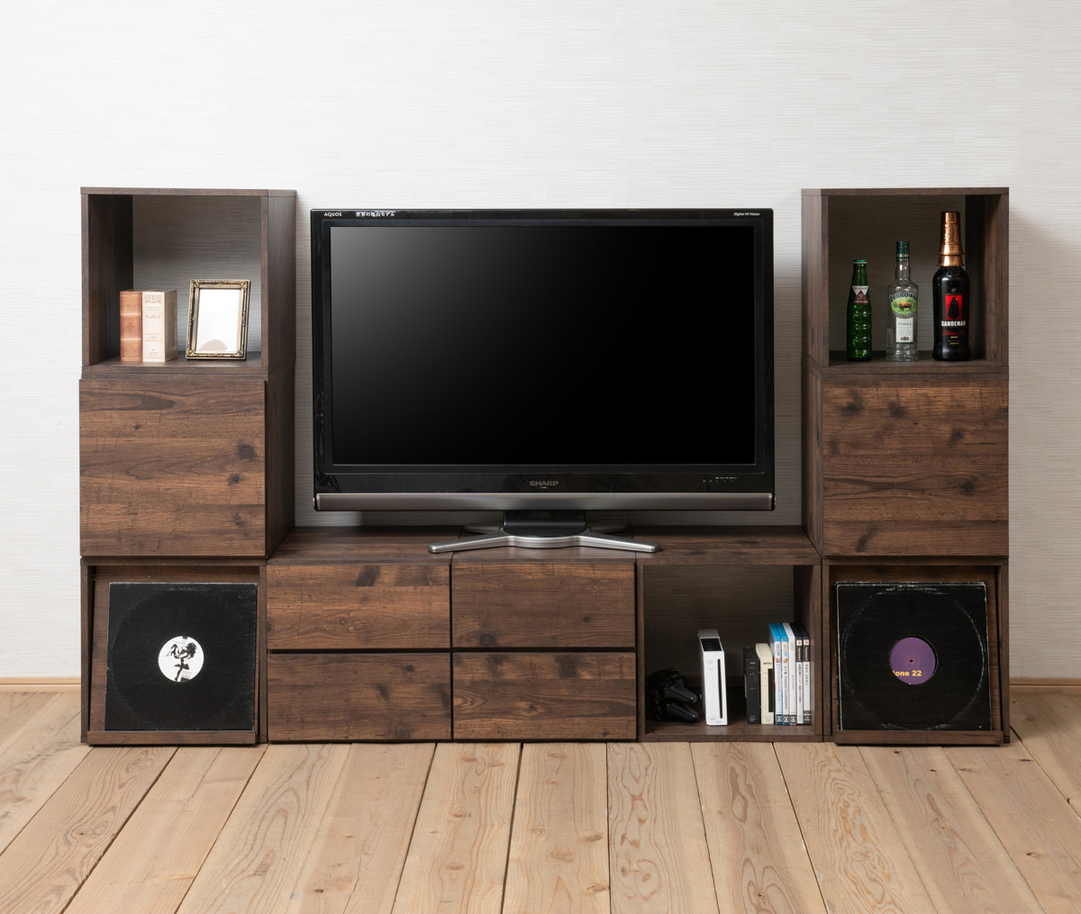 扉を閉じることで中に収納したものを隠せるフラップ扉タイプ。扉にはお好きな雑誌やレコードを立て掛けてディスプレイも楽しめます。生活感のあるものを扉内に収納すれば、お部屋がすっきり。