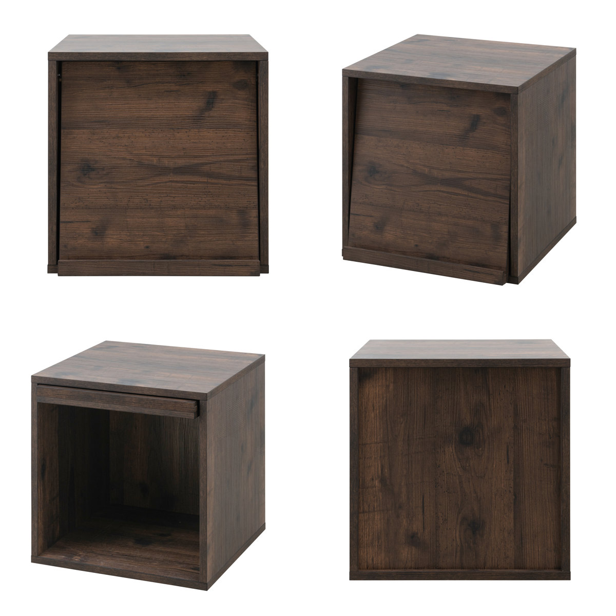 ユニットボックス フラップ扉タイプ 39×39cm 積み重ね ( 収納ボックス 組み合わせ A4対応 棚 ラック BOX フラップ扉 シェルフ 収納 多目的ラック ディスプレイ レコード収納 ホワイトウォッシュ ブラウン ) 【ブラウン】