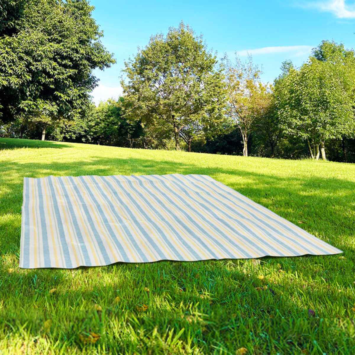裏面のアルミ部分は、水や地面からの湿気を防ぐので快適です。三層構造により、地面からの熱や冷気も緩和してくれます。